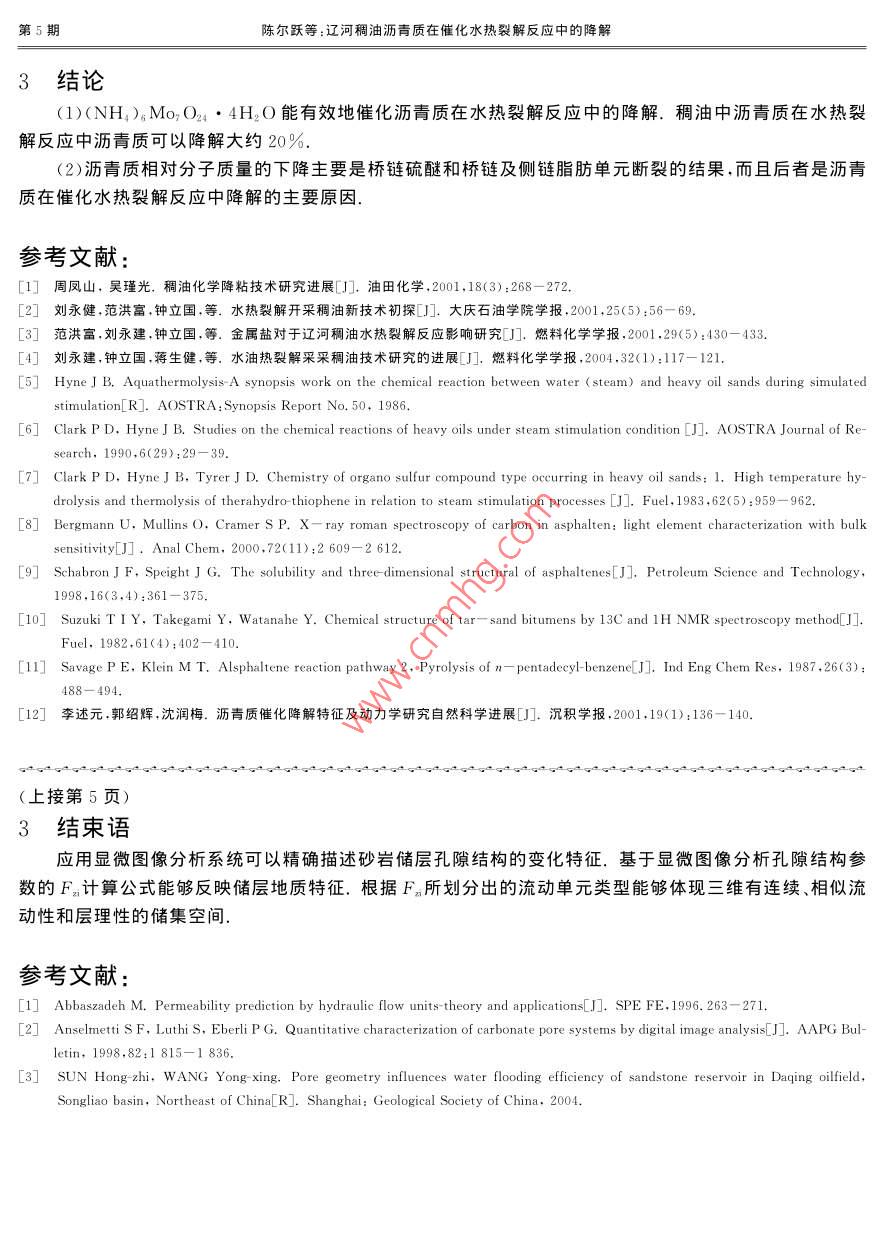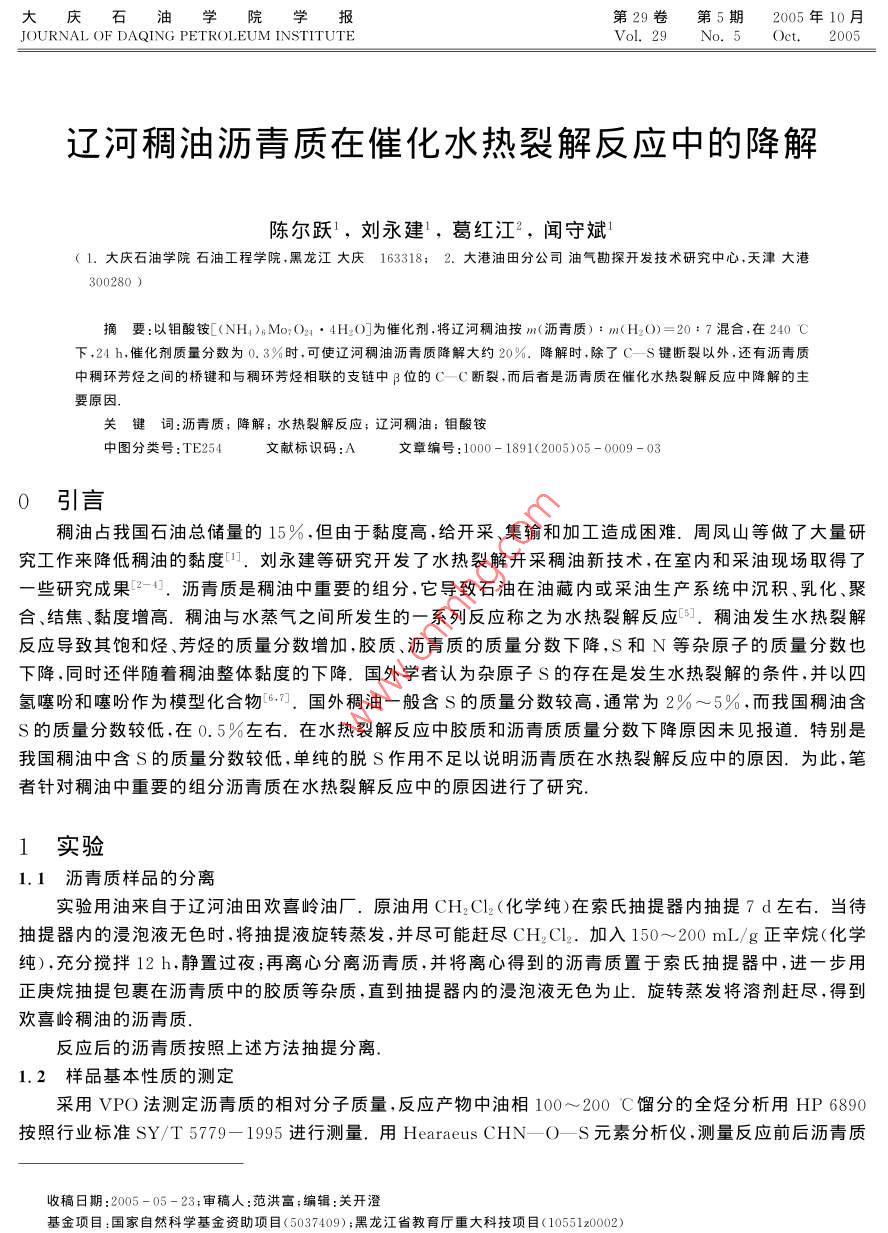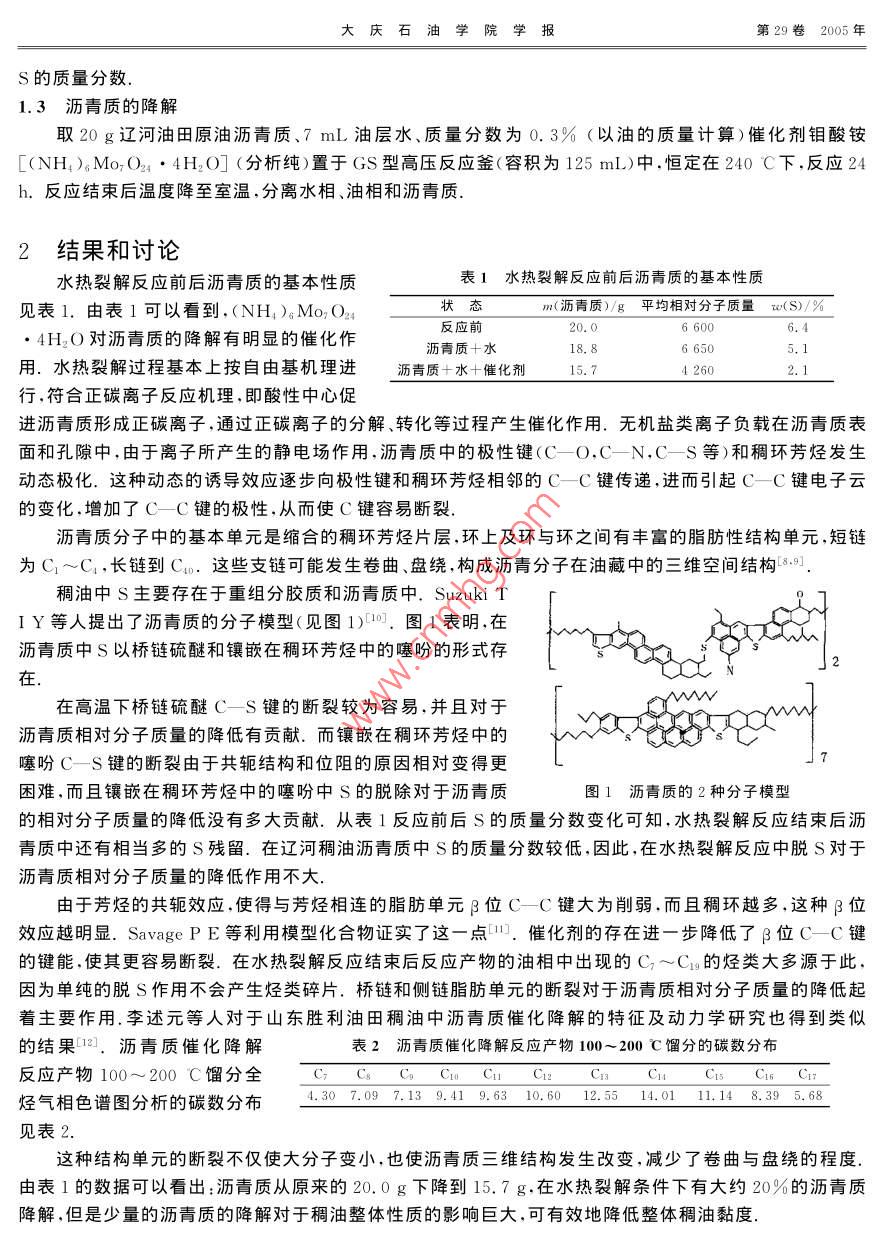 辽河稠油沥青质在催化水热裂解反应中的降解