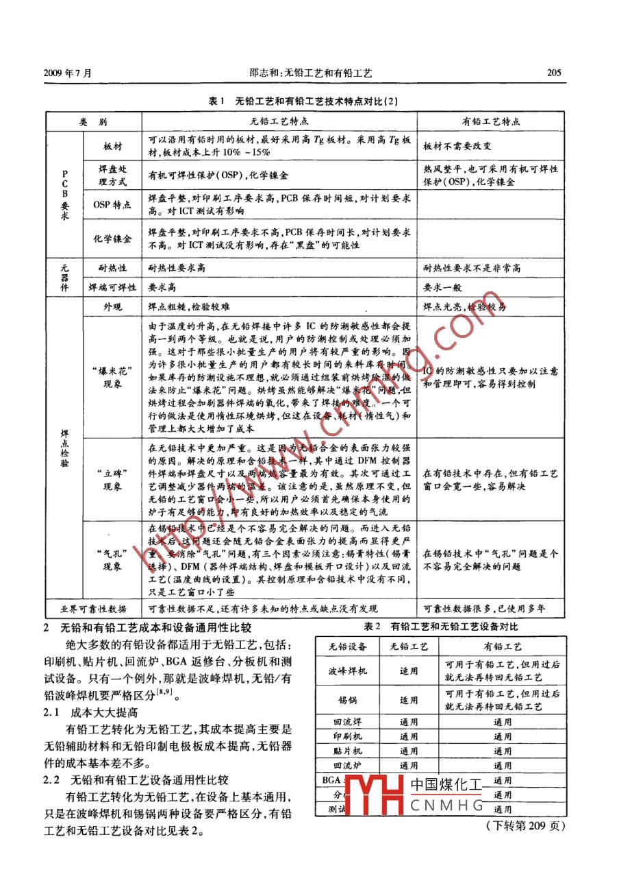 无铅工艺和有铅工艺