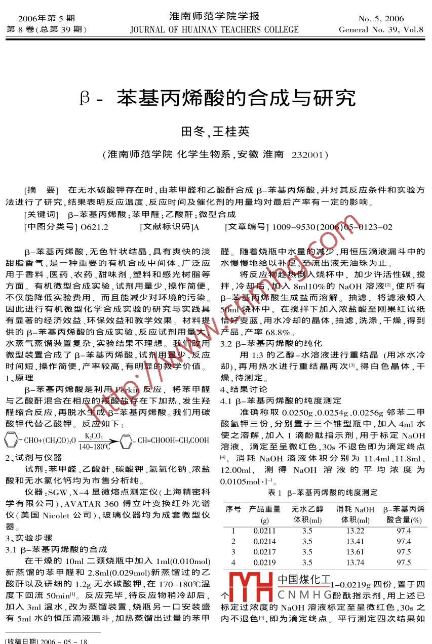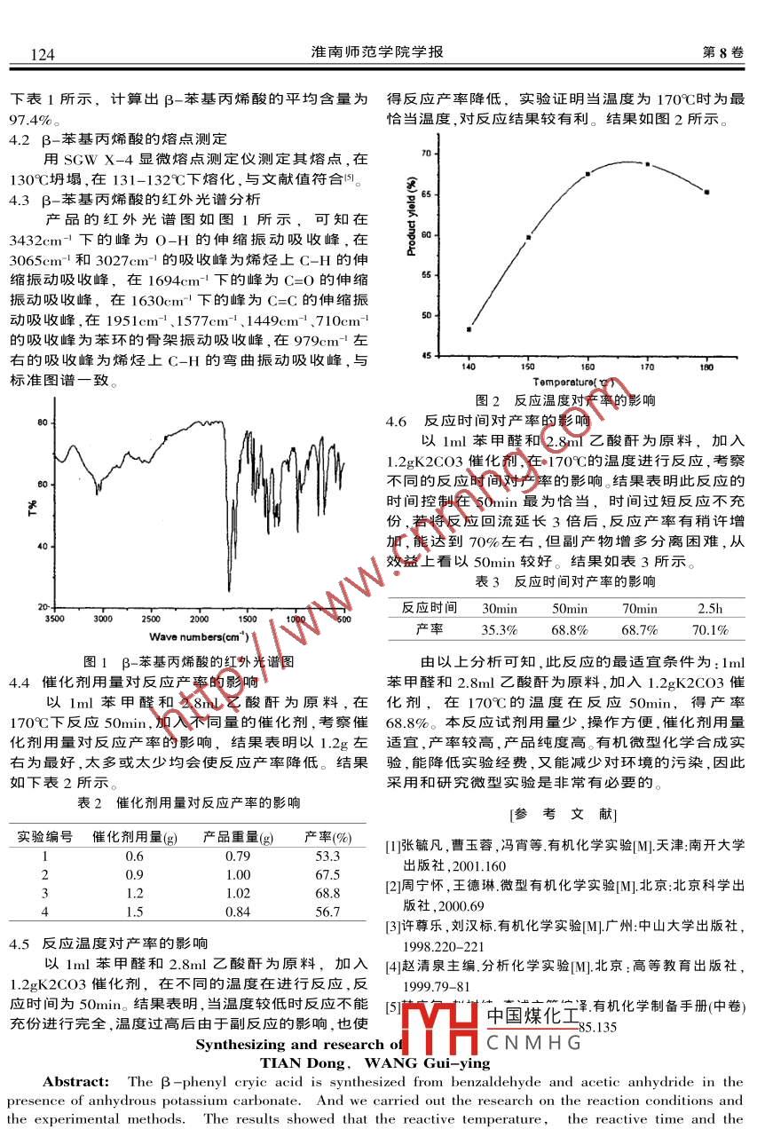 β-苯基丙烯酸的合成与研究