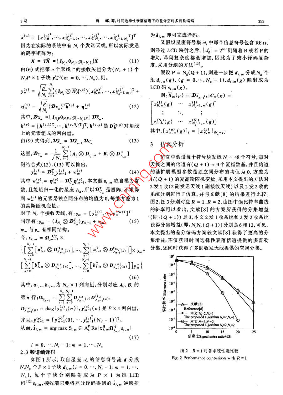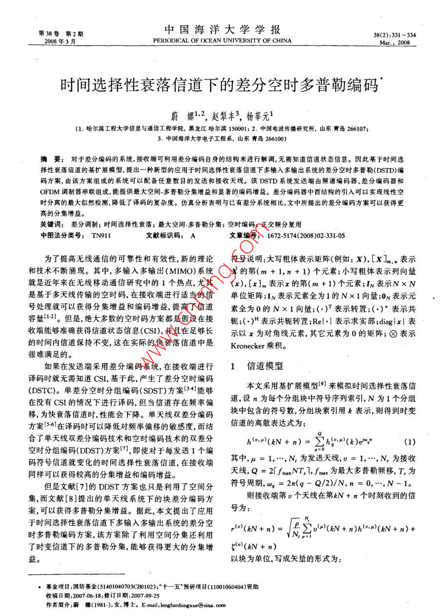 时间选择性衰落信道下的差分空时多普勒编码
