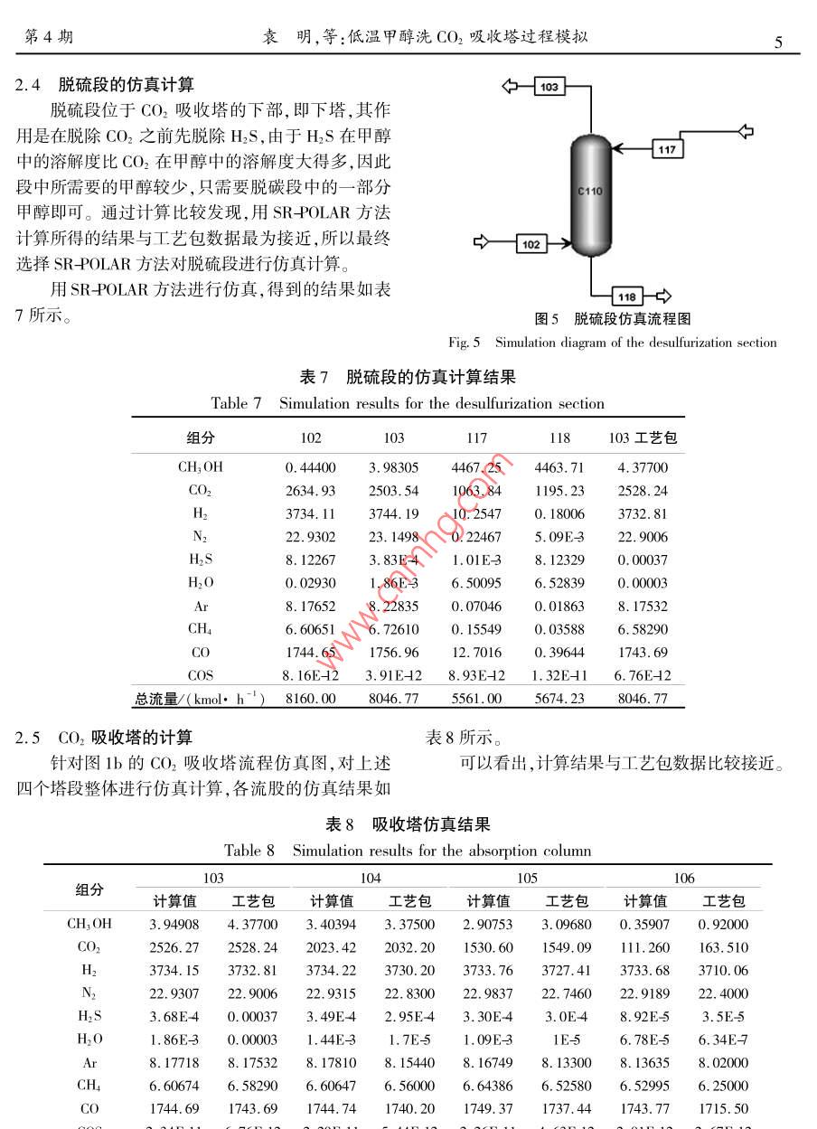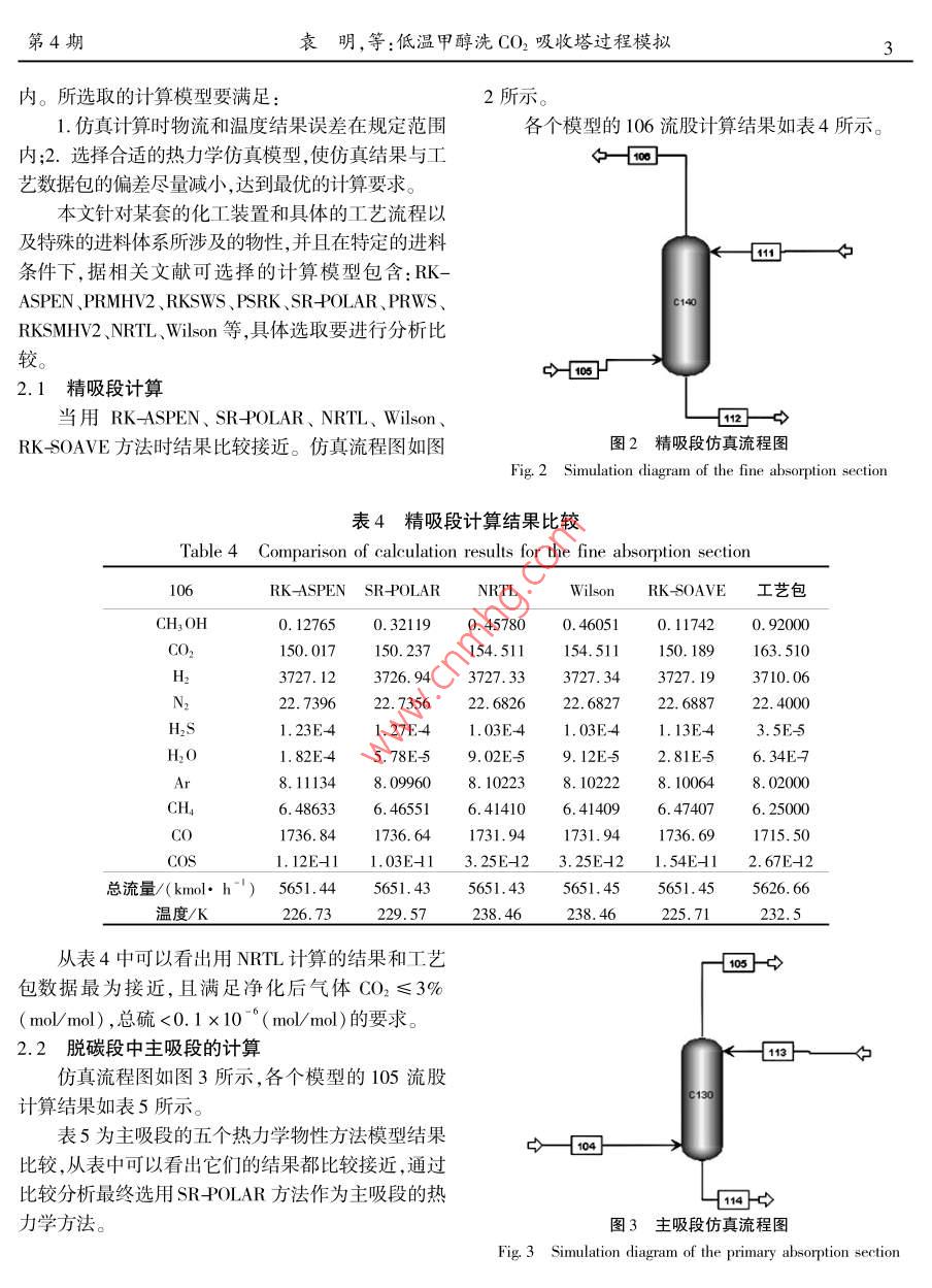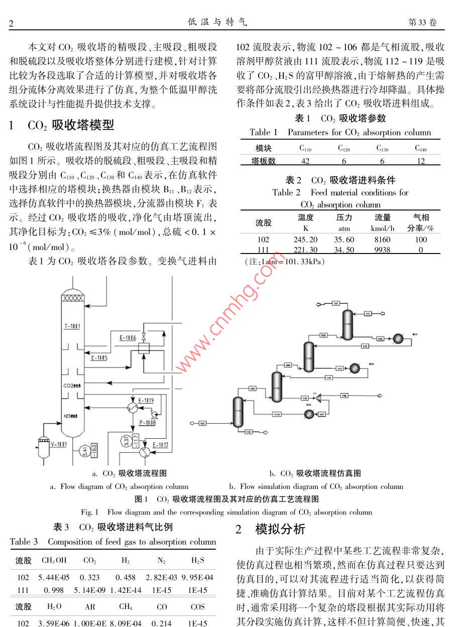 低温甲醇洗 CO2吸收塔过程模拟