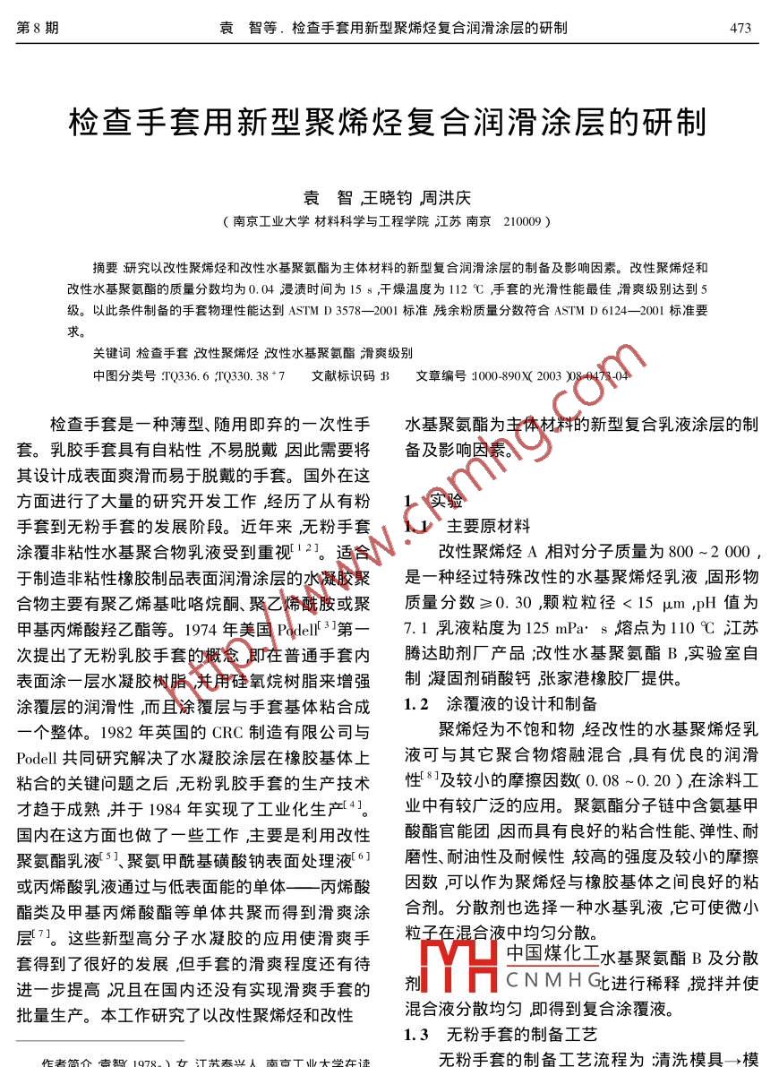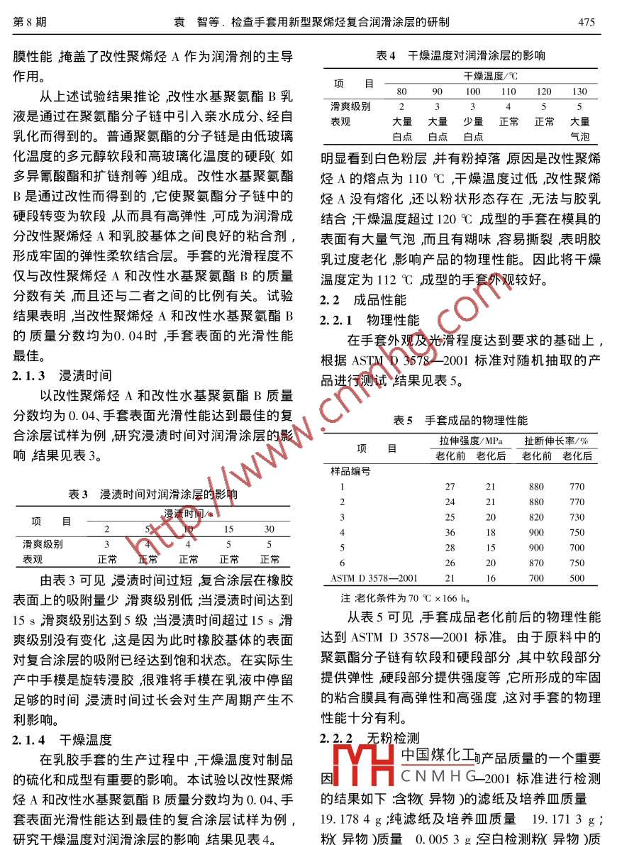 检查手套用新型聚烯烃复合润滑涂层的研制