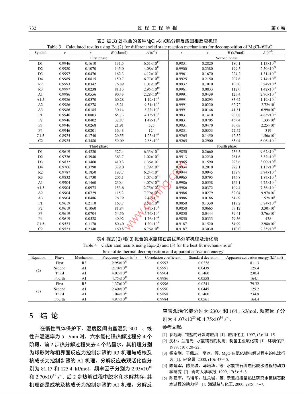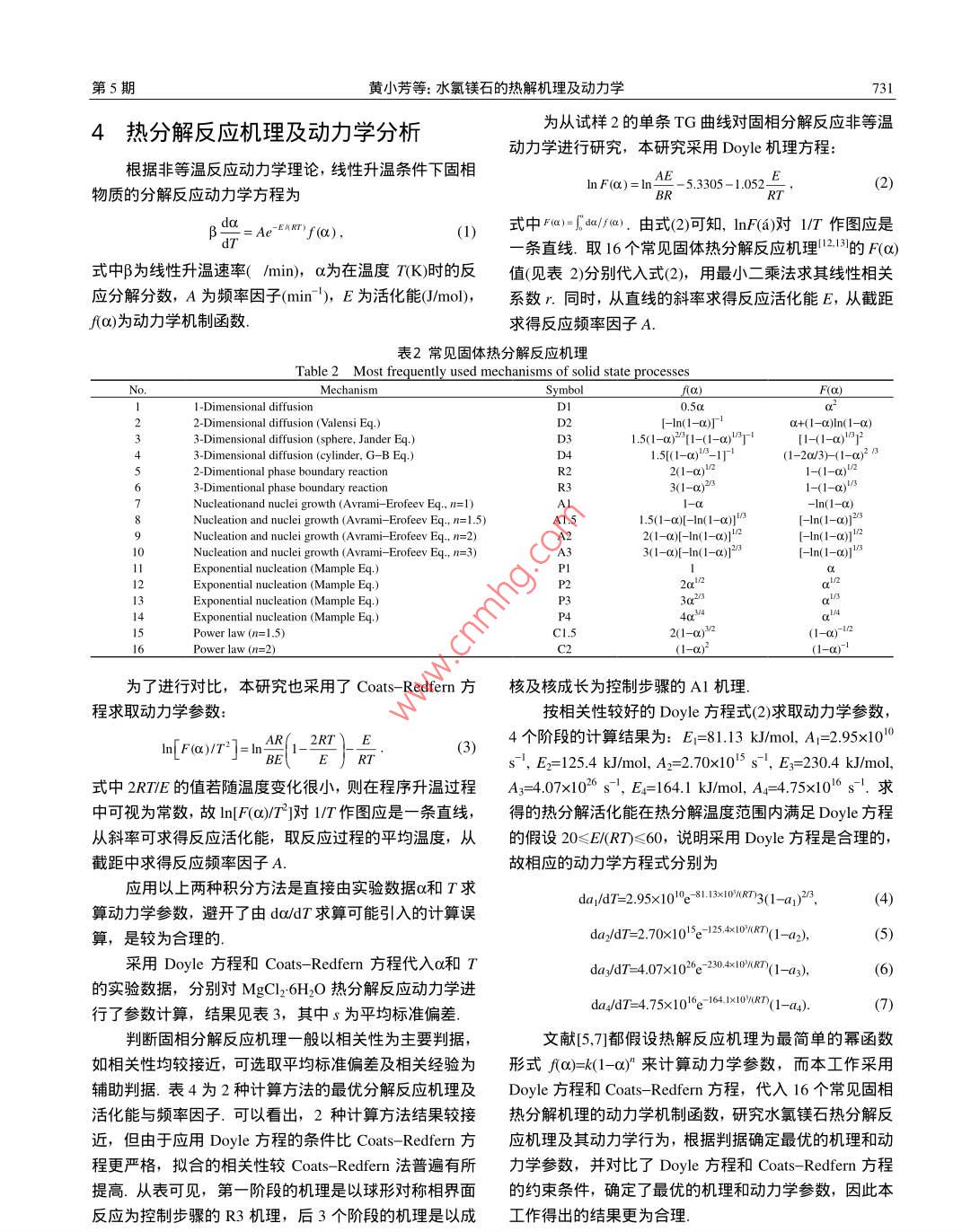 水氯镁石的热解机理及动力学