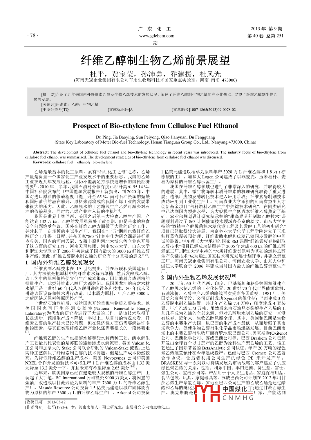- 作者单位:河南天冠企业集团有限公司车用生物燃料技术国家重点实验室