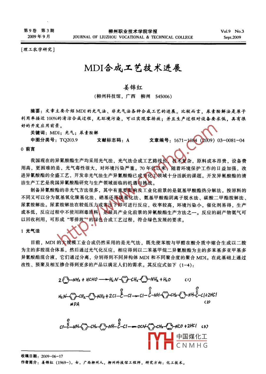 MDI合成工艺技术进展