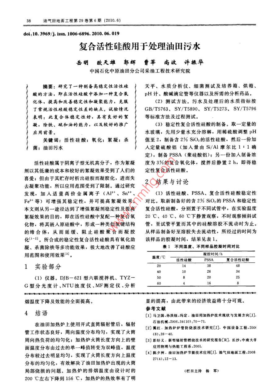 复合活性硅酸用于处理油田污水