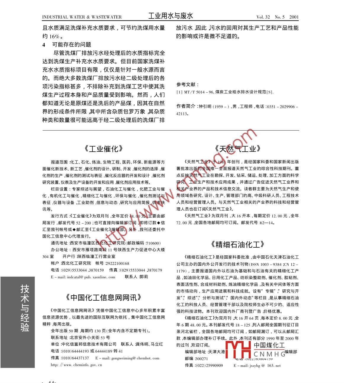 - 期刊名字:工业用水与废水