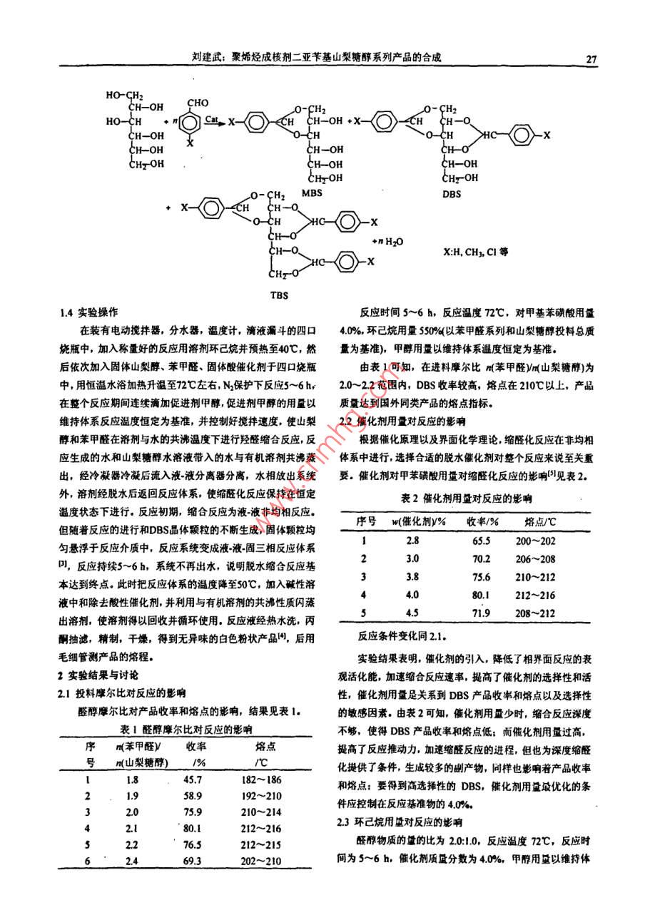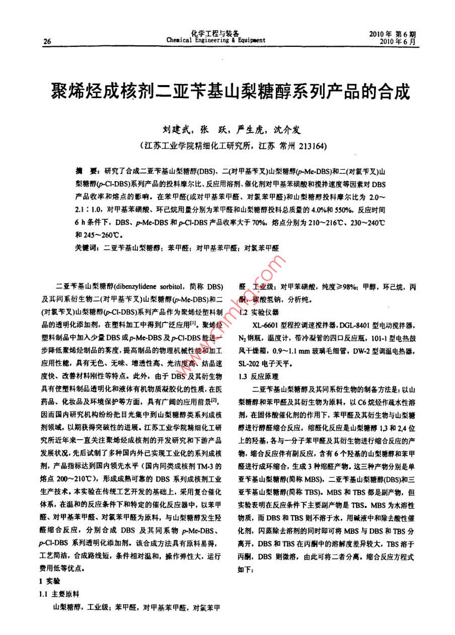 聚烯烃成核剂二亚苄基山梨糖醇系列产品的合成
