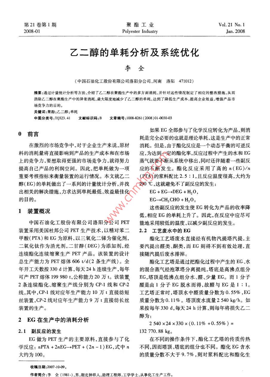 - 期刊名字:聚酯工业