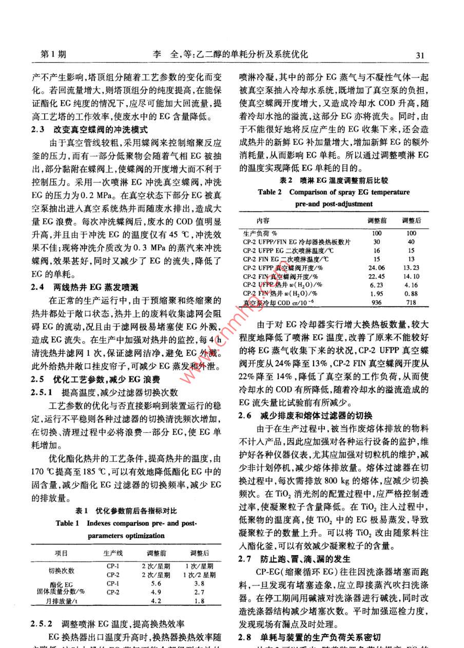 乙二醇的单耗分析及系统优化