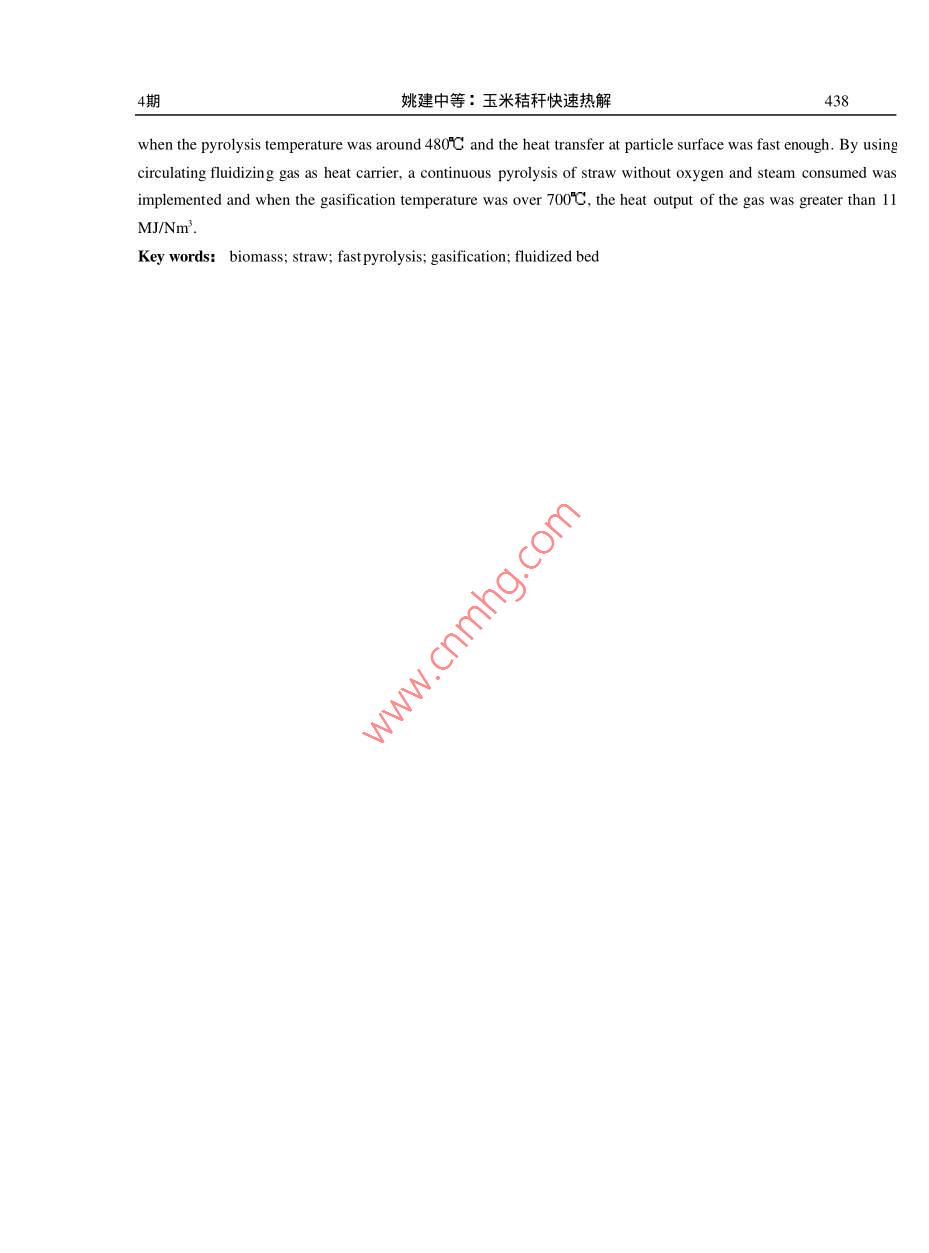 玉米秸秆快速热解