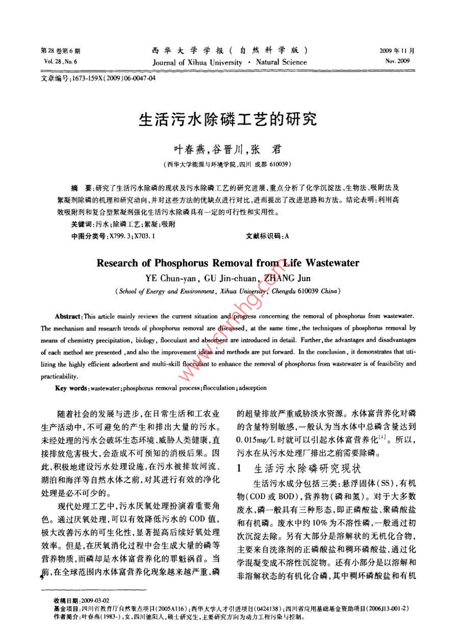 生活污水除磷工艺的研究
