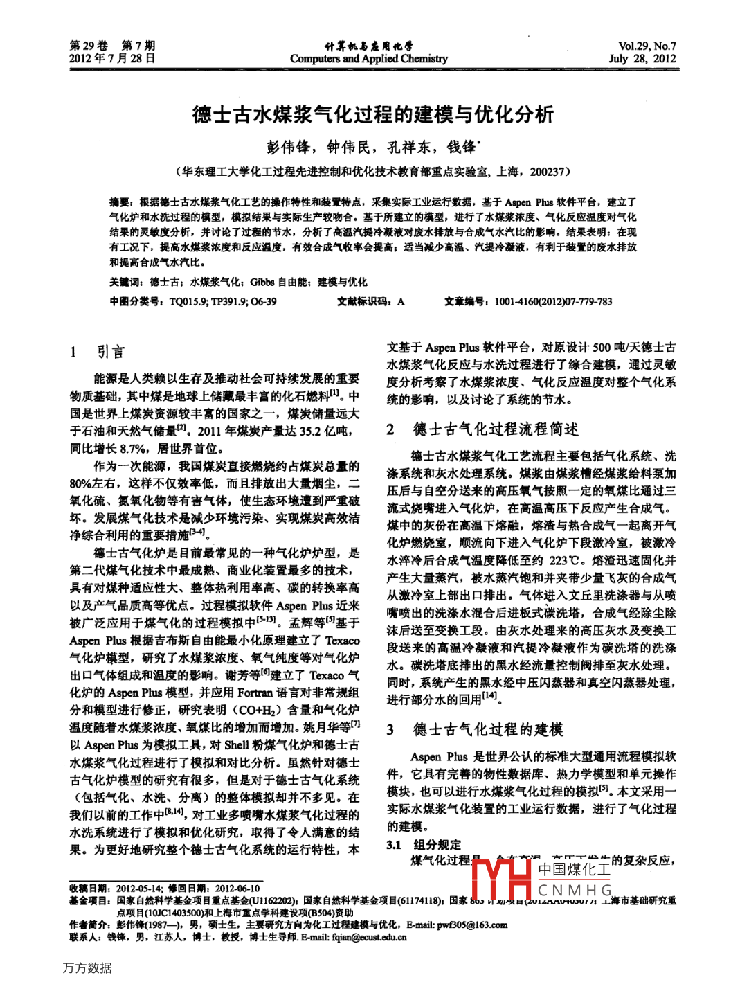 - 论文作者:彭伟锋,钟伟民,孔祥东,钱锋