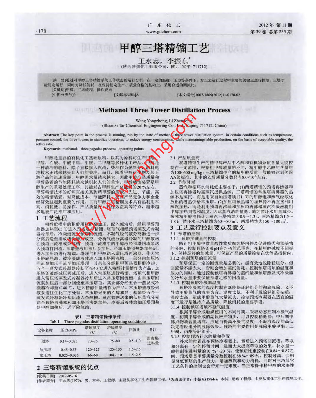 甲醇三塔精馏工艺
