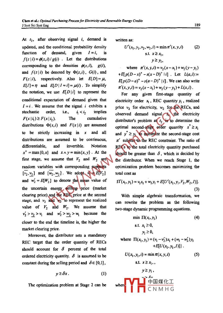 OPTIMAL PURCHASING PROCESS FOR ELECTRICITY AND RENEWABLE ENERGY CREDITS WITH PRICE AND DEMAND UNCERT