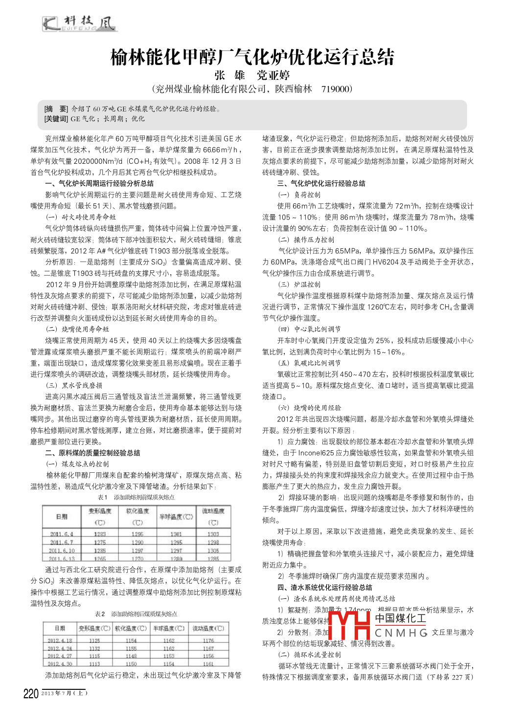 榆林raybet雷电竞电竞app下载地址 甲醇厂气化炉优化运行总结