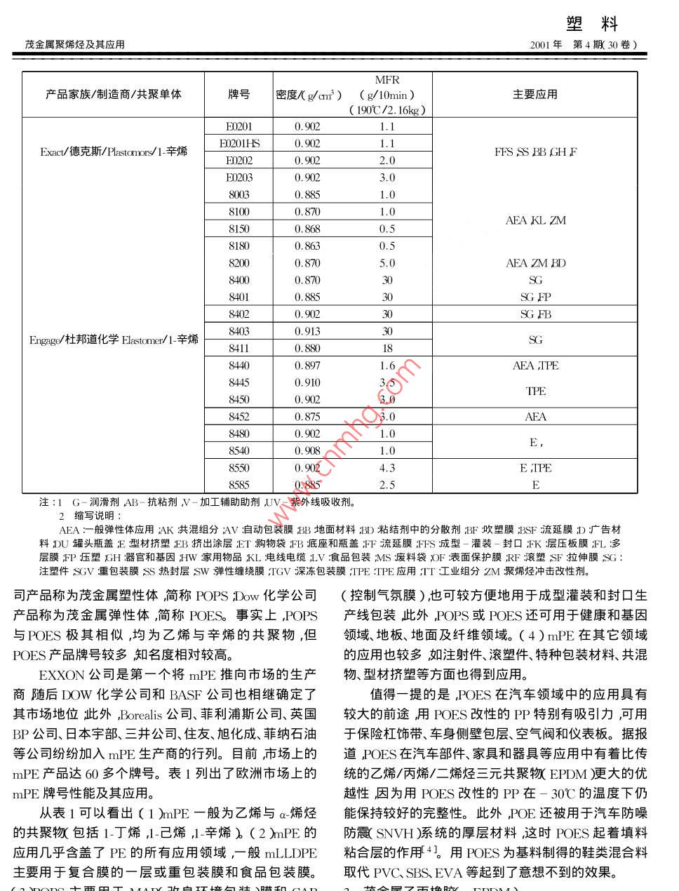 茂金属聚烯烃及其应用
