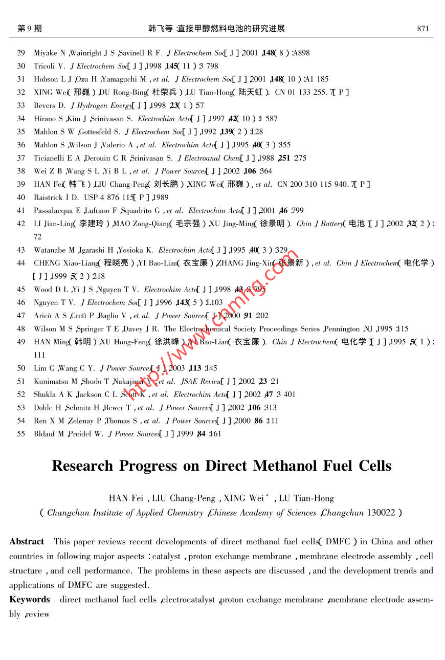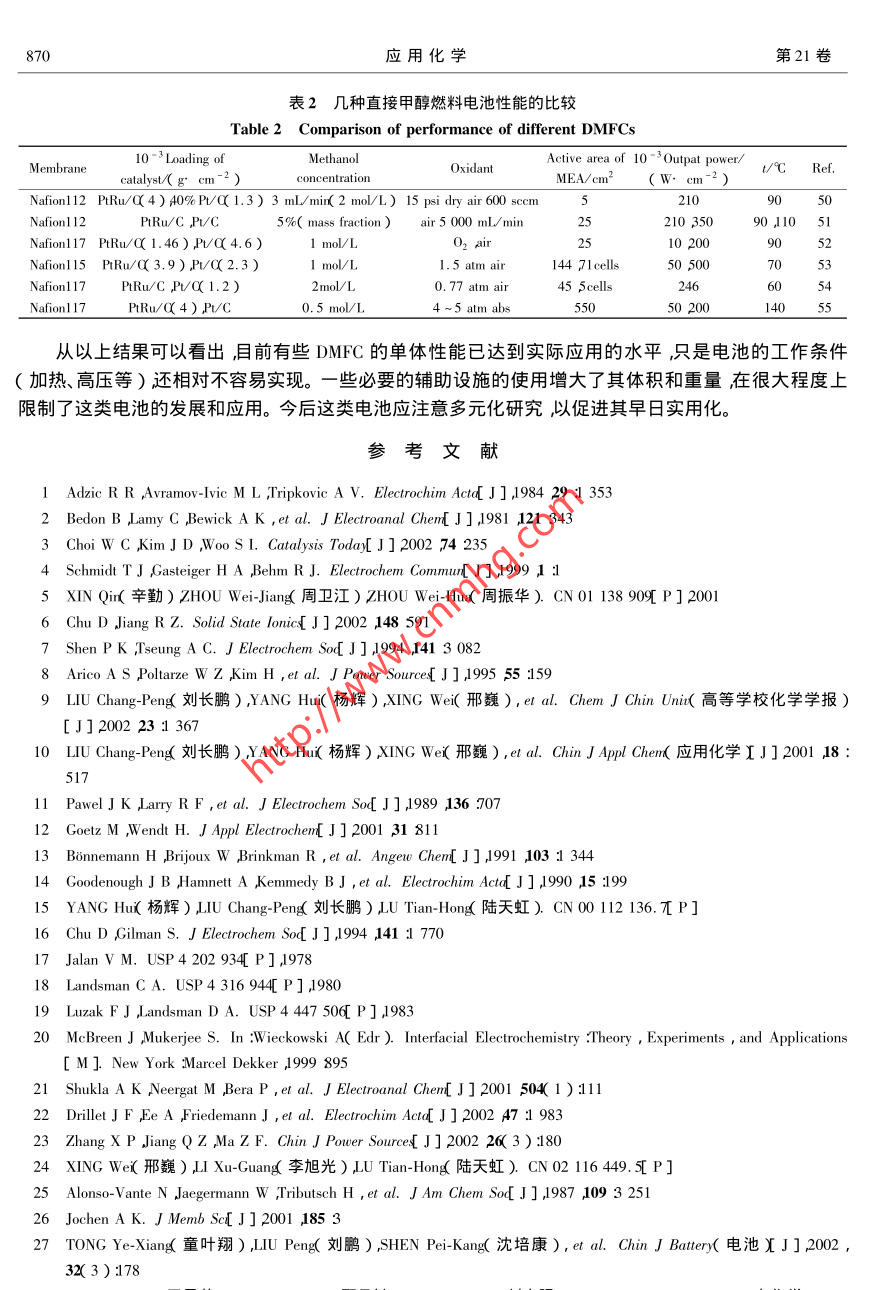 直接甲醇燃料电池的研究进展