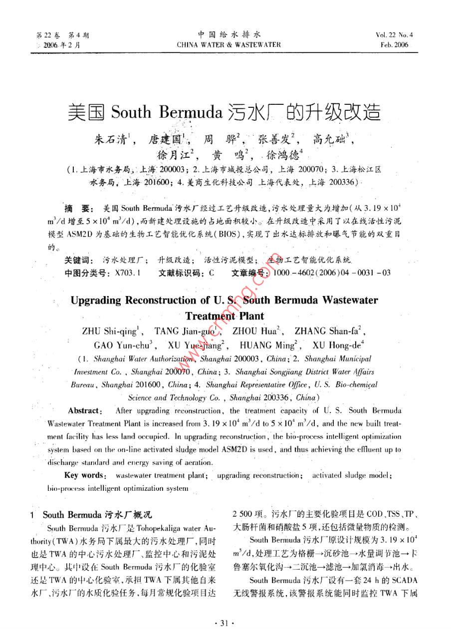 - 作者单位:上海市水务局,上海市城投总公司,上海松江区水务局,美商生化科技公司上海代表处