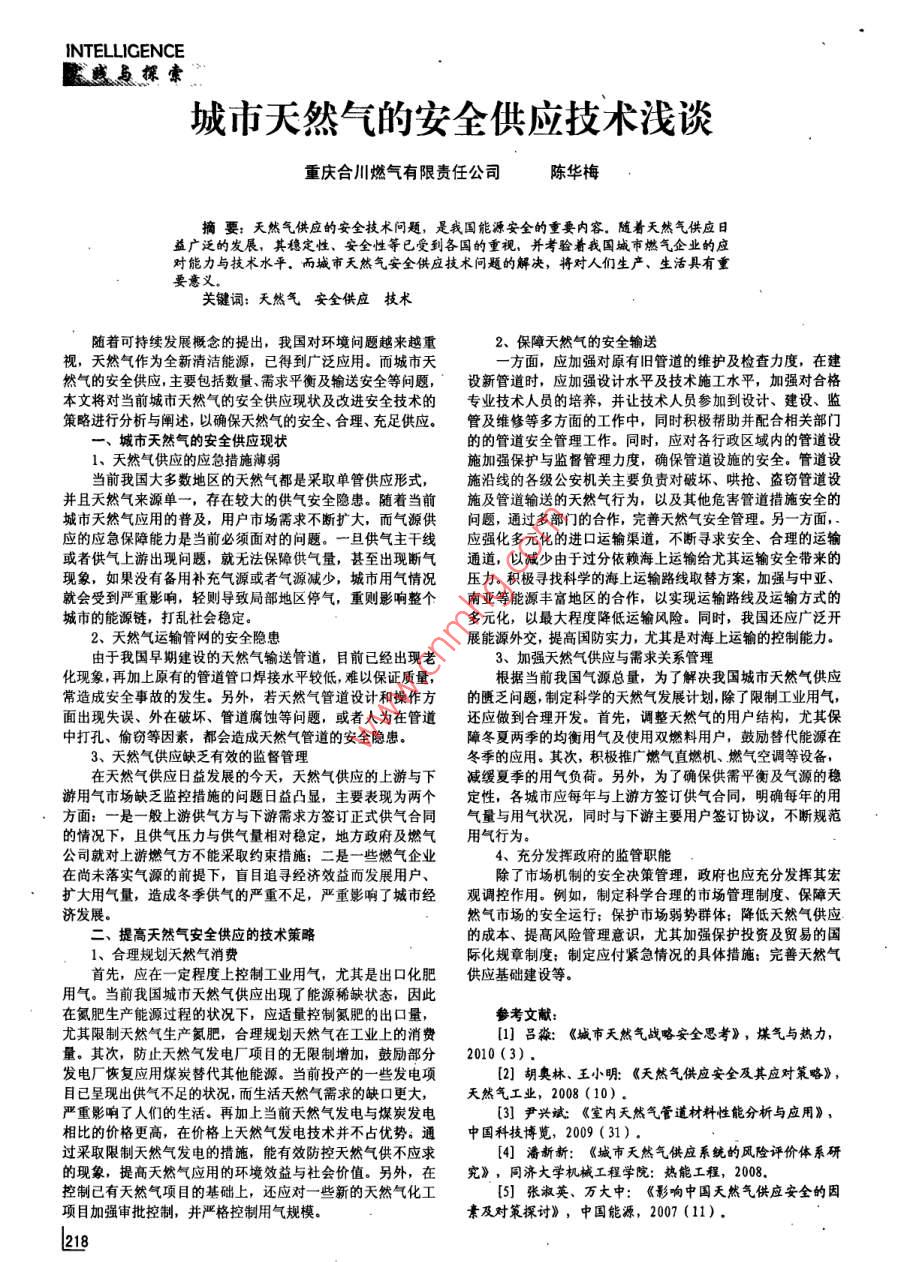 - 作者单位:重庆合川燃气有限责任公司