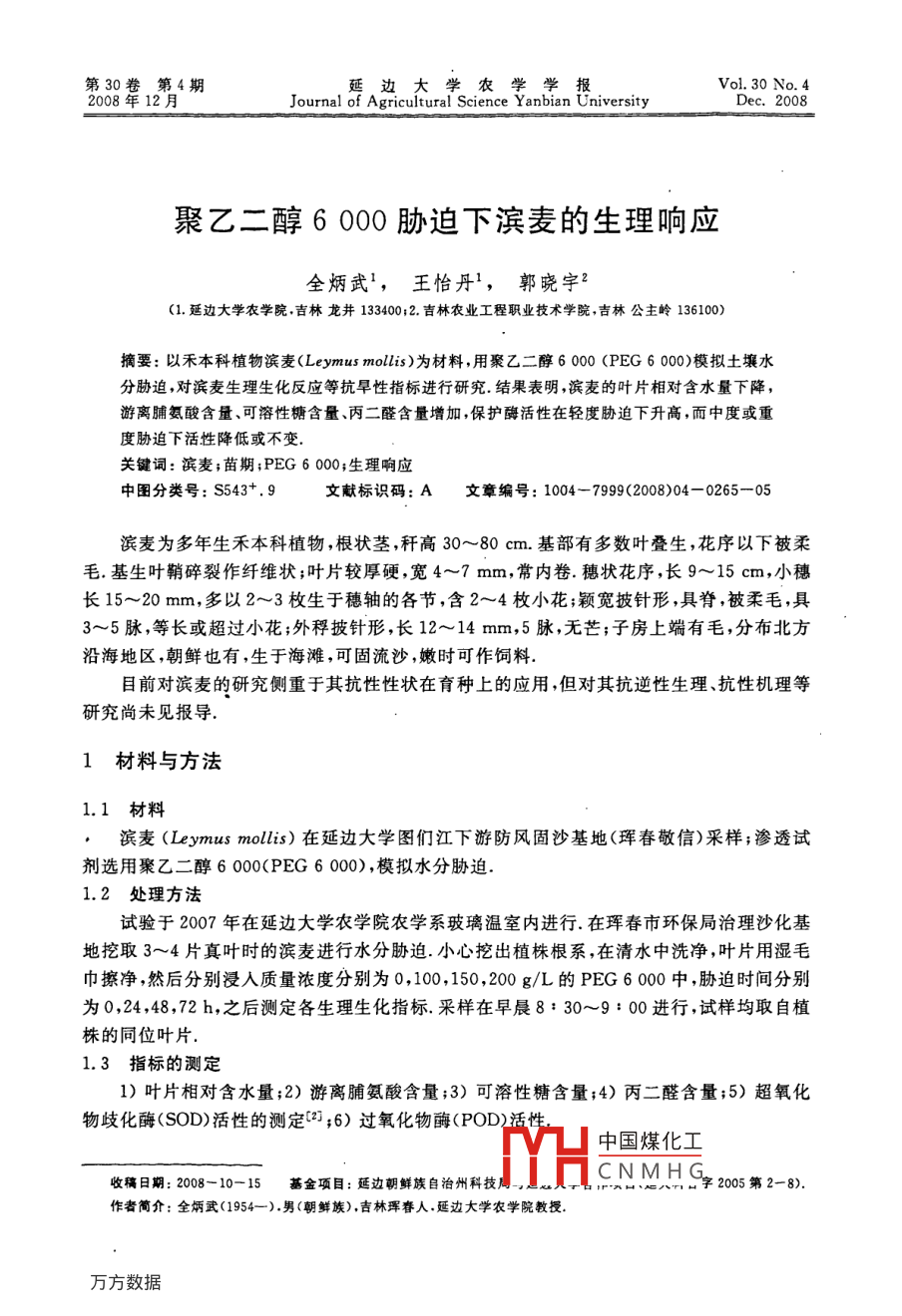 聚乙二醇6000胁迫下滨麦的生理响应