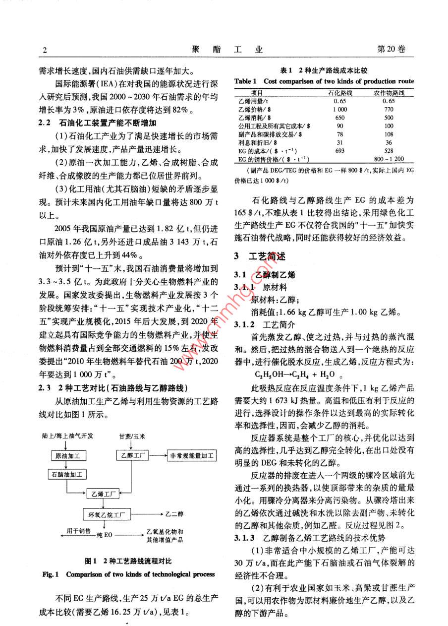 利用可再生生物能源生产化纤原料乙二醇