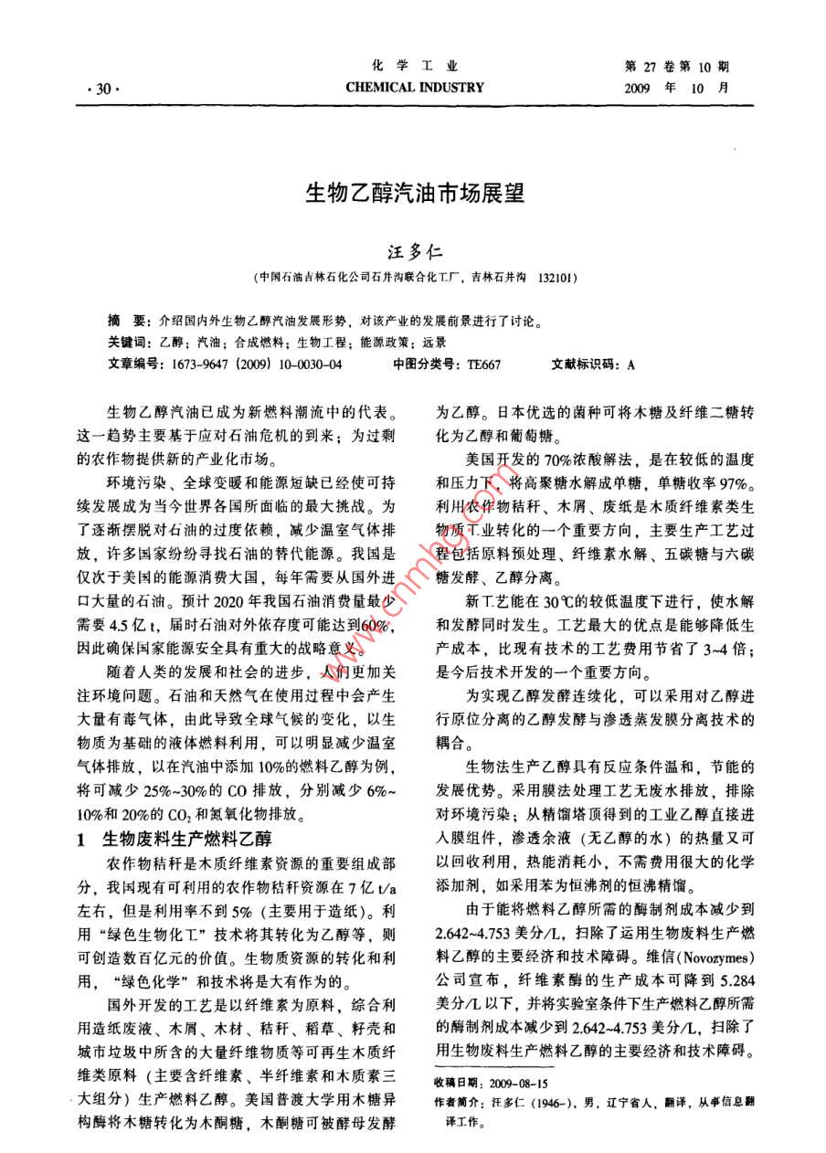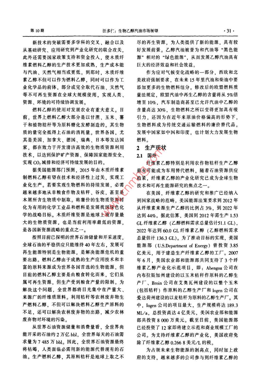 生物乙醇汽油市场展望
