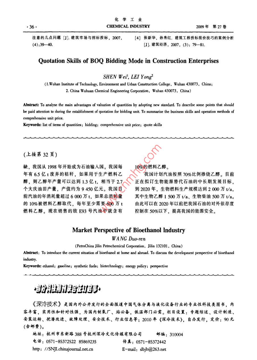 - 期刊名字:化学工业