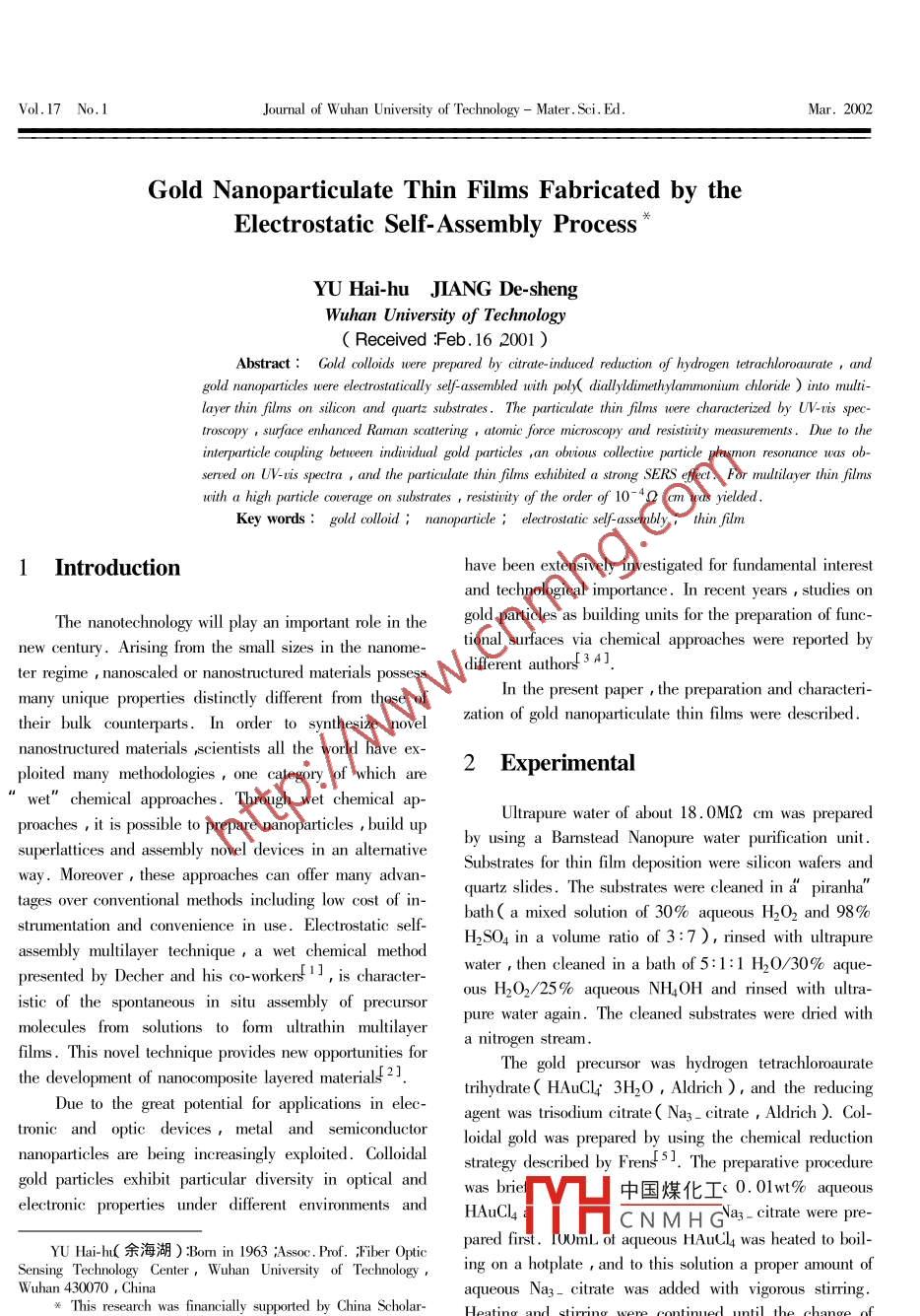 Gold Nanoparticulate Thin Films Fabricated by the Electrostatic Self-Assembly Process