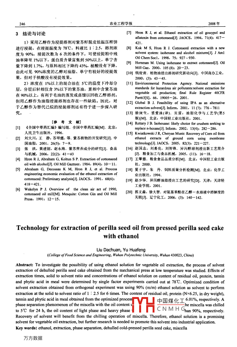 乙醇浸提紫苏籽压榨饼中油脂的工艺
