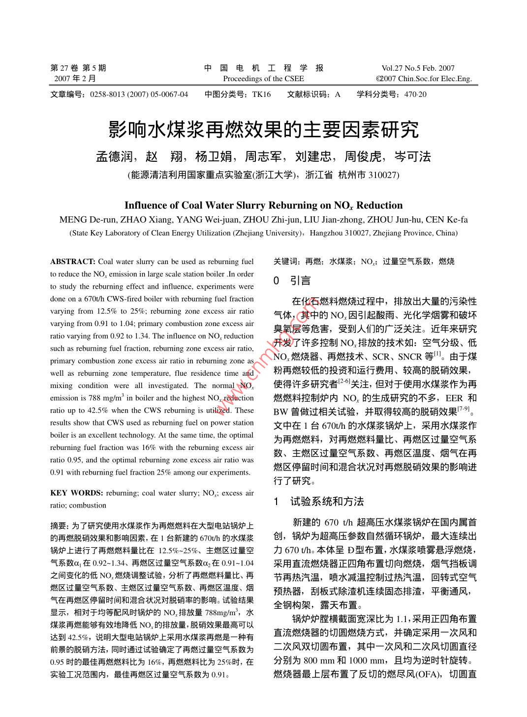 - 论文作者:孟德润,赵翔,杨卫娟,周志军,刘建忠,周俊虎,岑可法