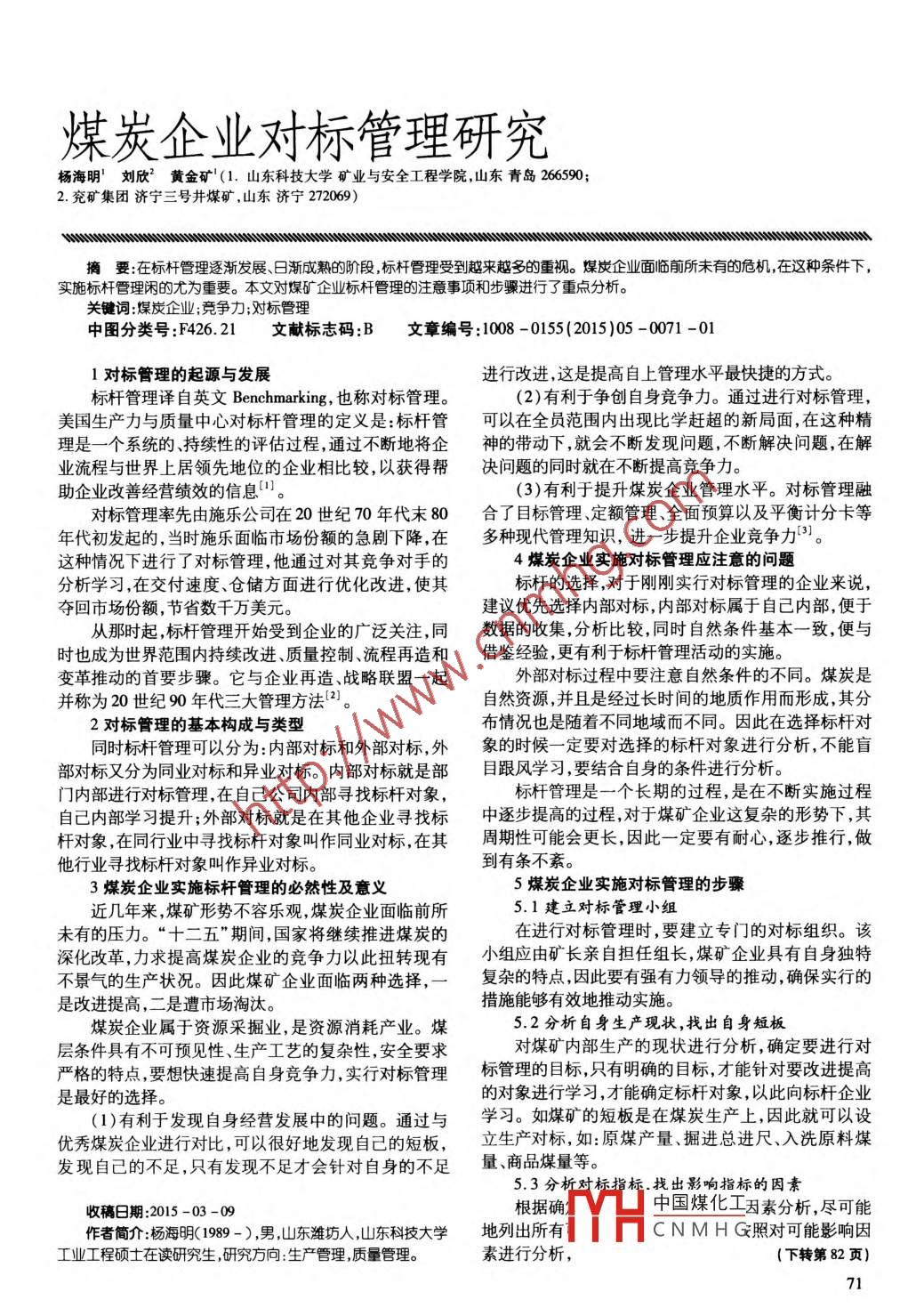 煤炭企业对标管理研究