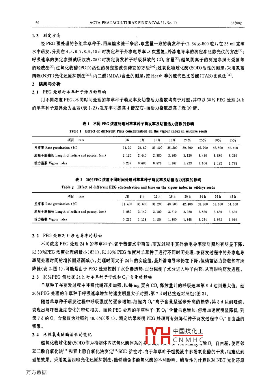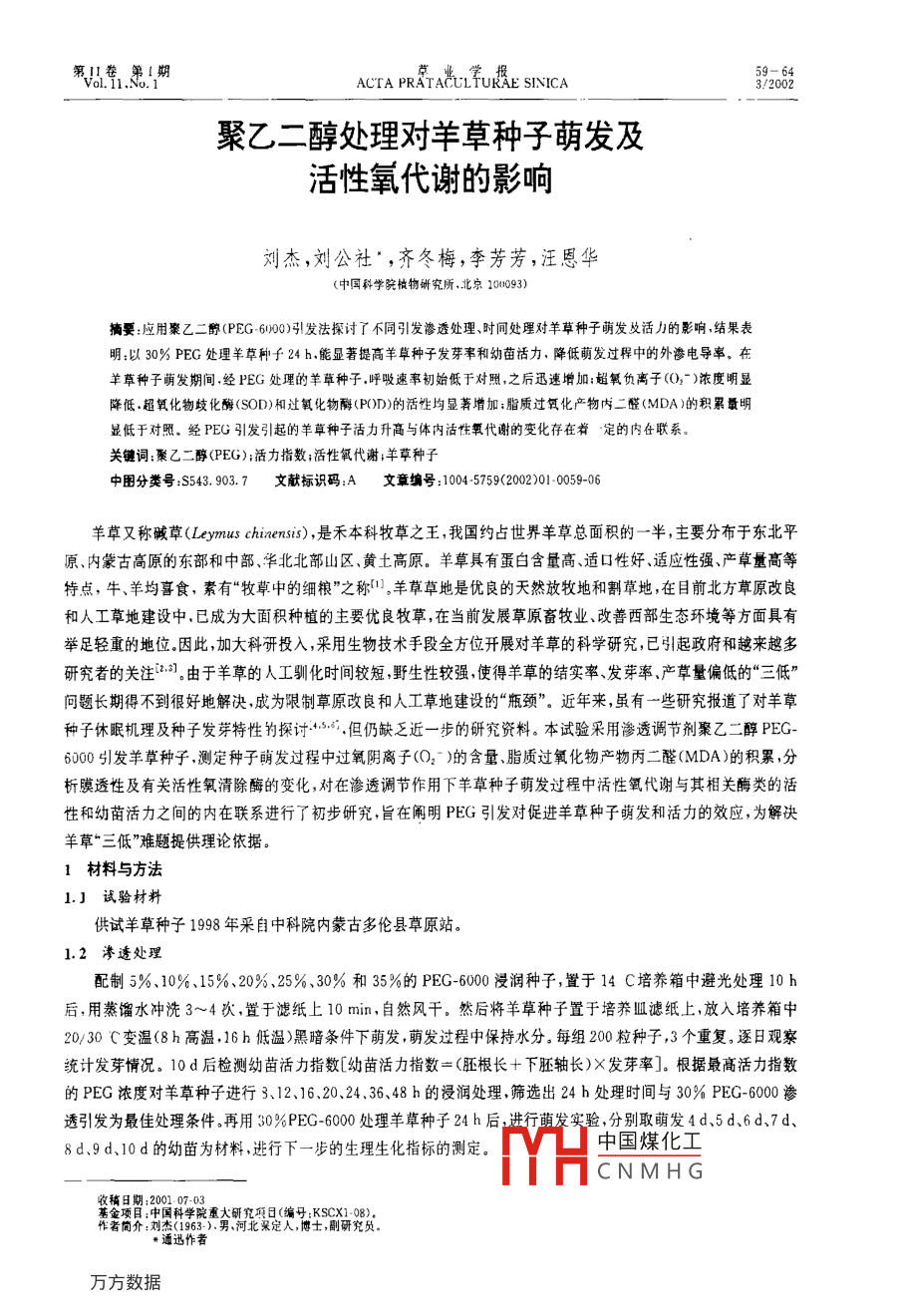 聚乙二醇处理对羊草种子萌发及活性氧代谢的影响