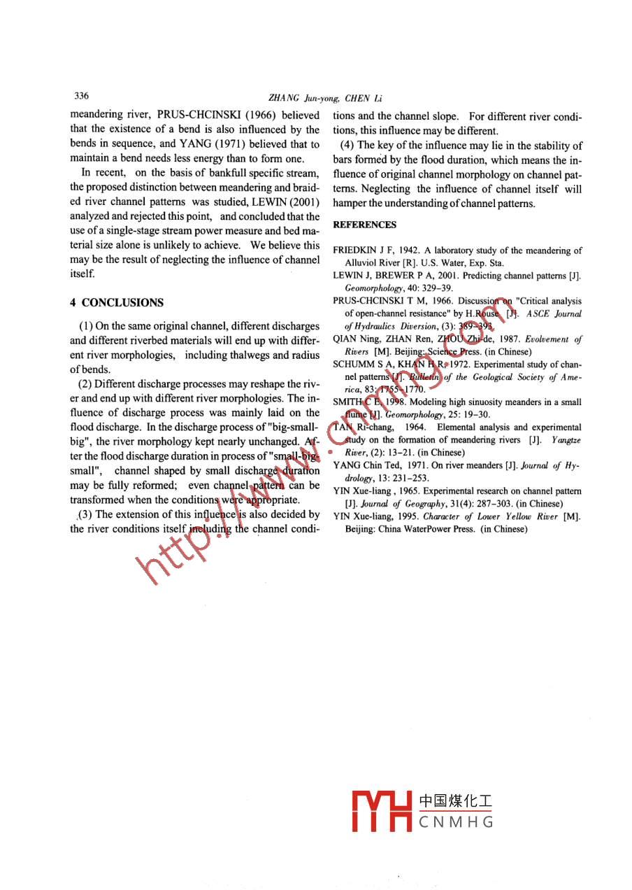 EXPERIMENTS OF INFLUENCE OF DISCHARGE PROCESS ON CHANNEL PATTERN