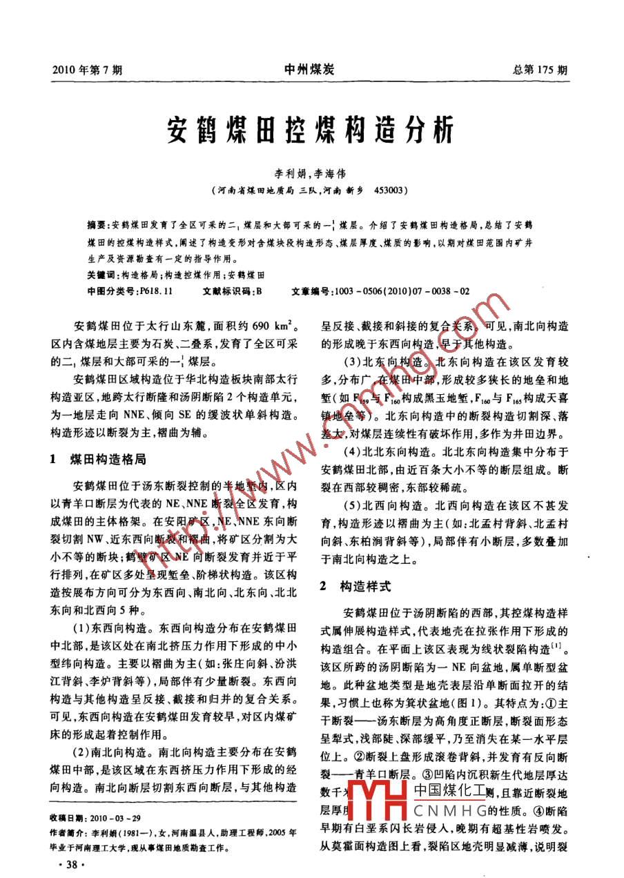 安鹤煤田控煤构造分析