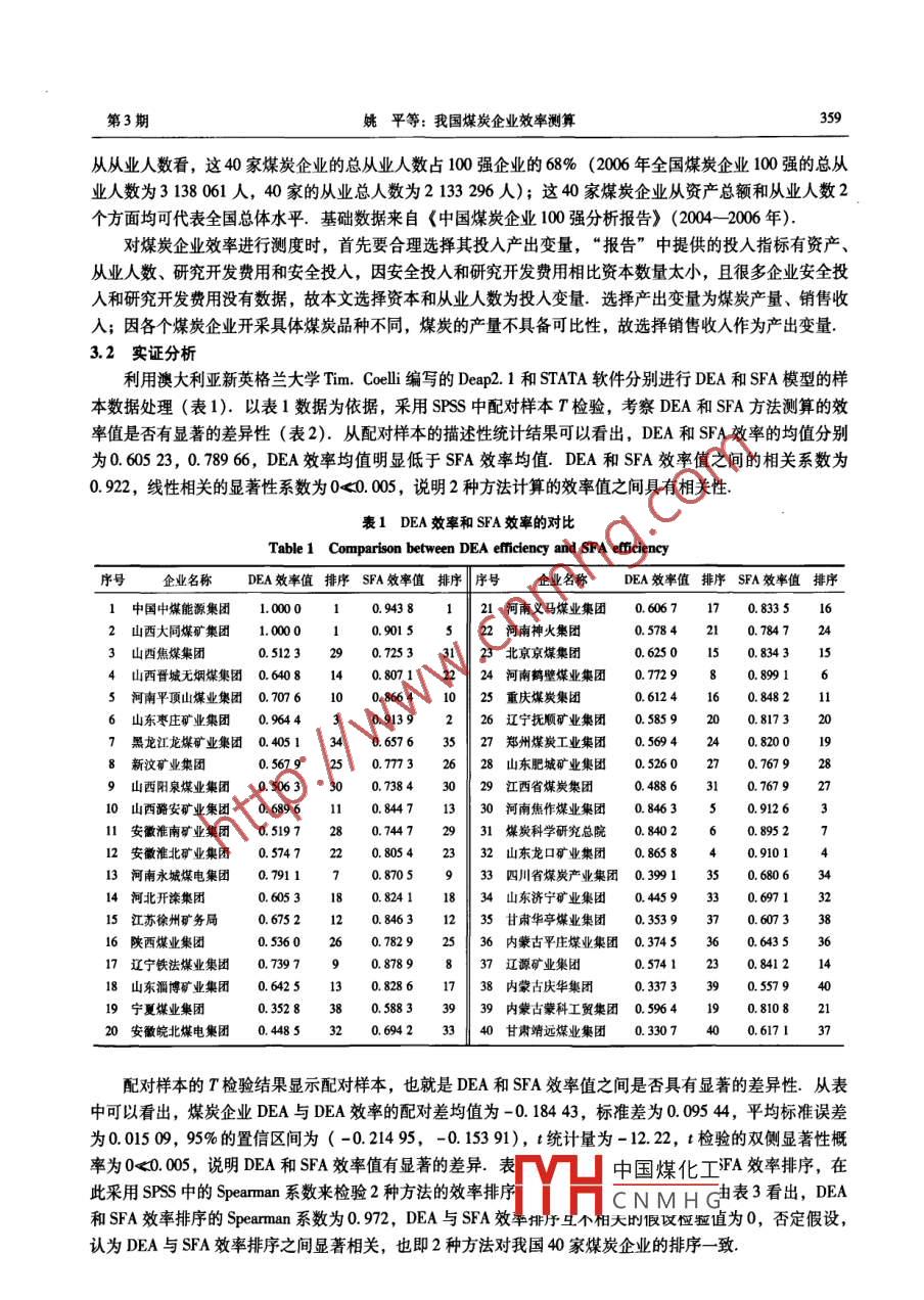 我国煤炭企业效率测算