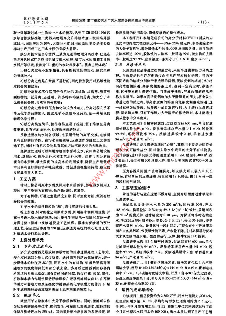 氯丁橡胶污水厂污水深度处理回用与应用成果