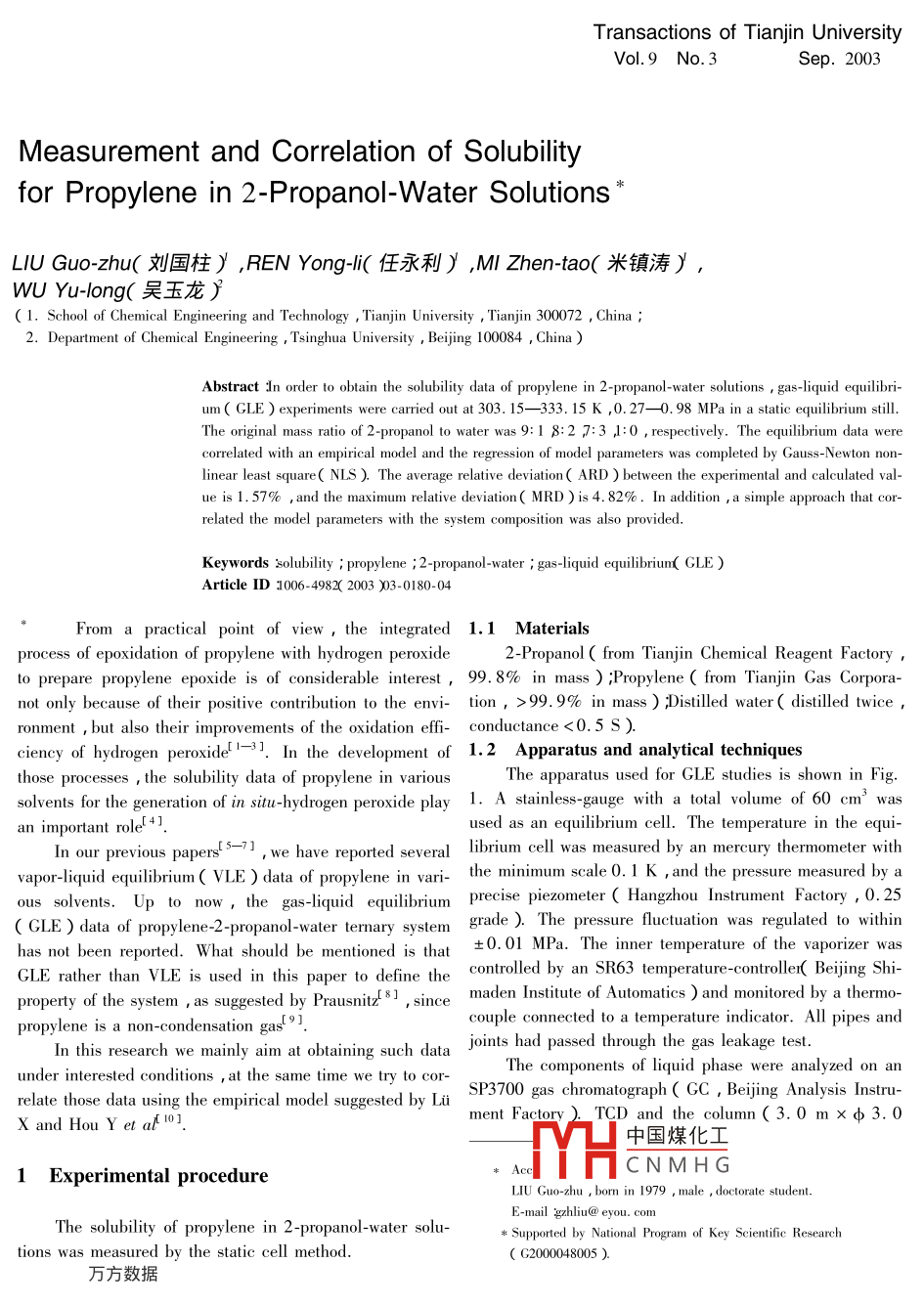- 作者单位:School of Chemical Engineering and Technology,Department of Chemical Engineering