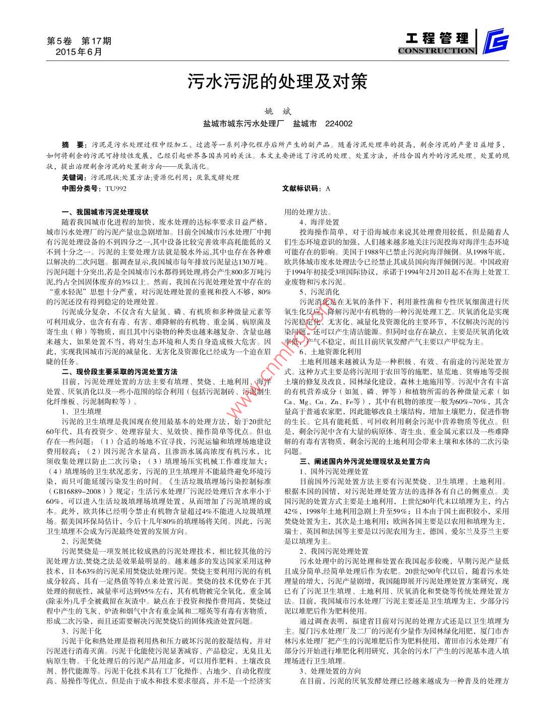 - 作者单位:盐城市城东污水处理厂