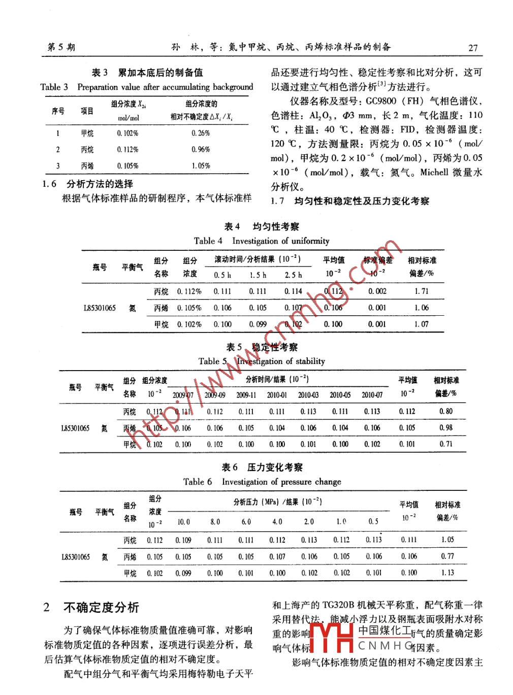 氮中甲烷、丙烷、丙烯raybet雷电竞电竞app下载地址 样品的制备