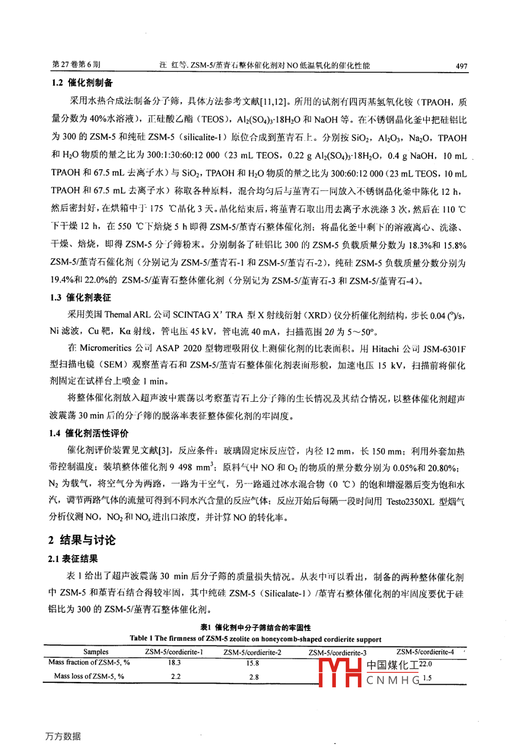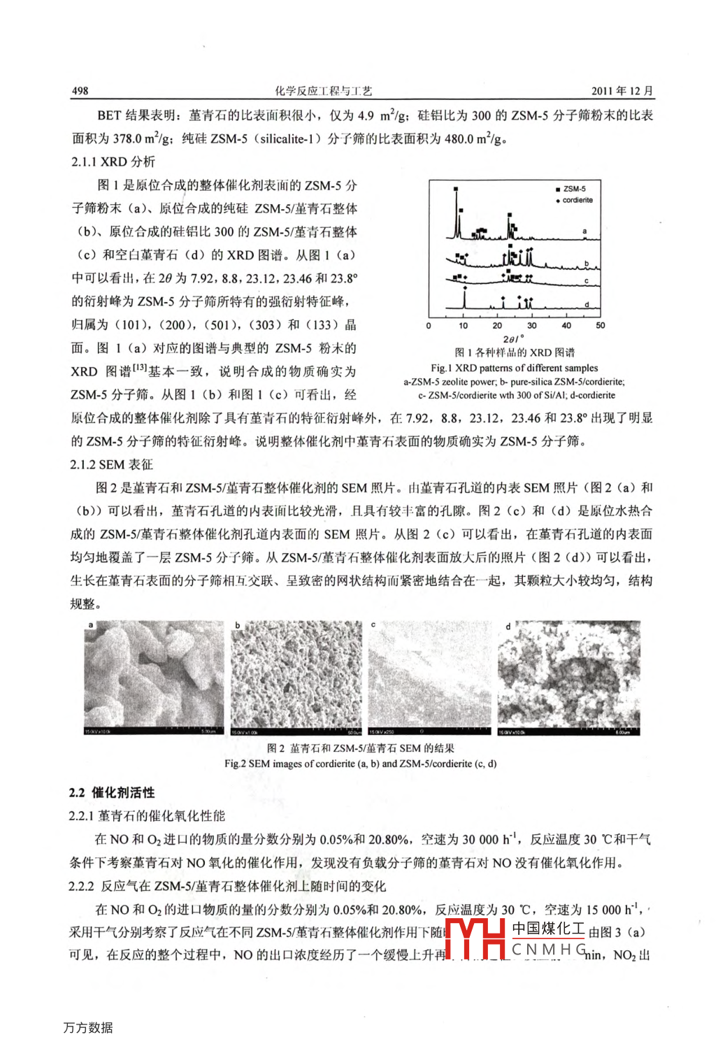 ZSM-5/堇青石整体催化剂对NO低温氧化的催化性能