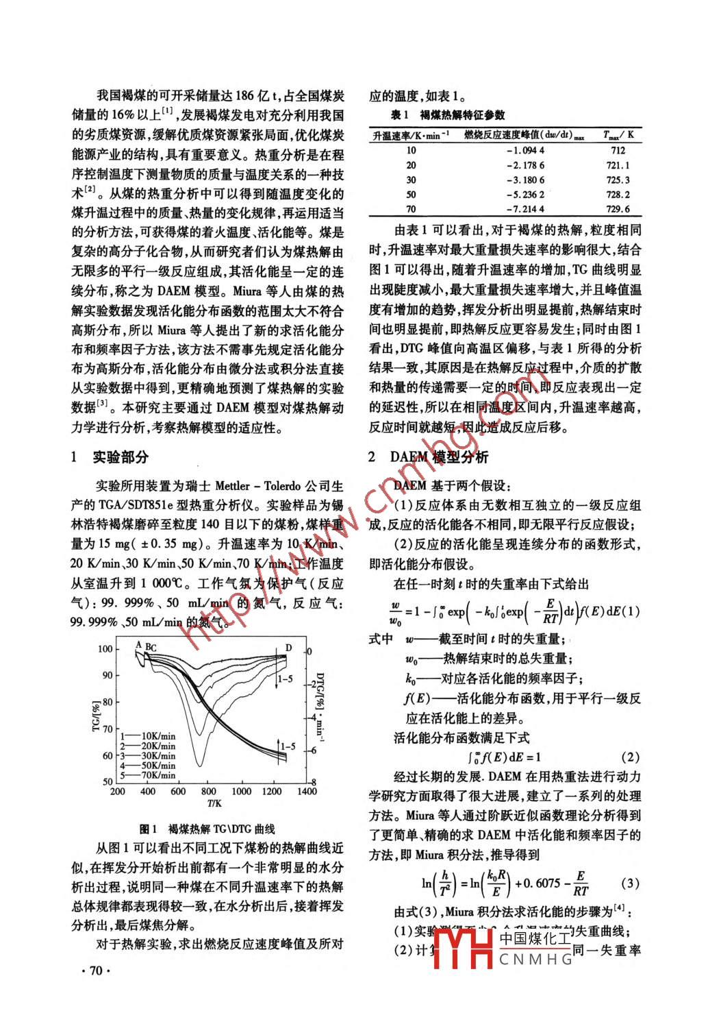 锡林浩特褐煤热解特性热重分析与DAEM模型分析