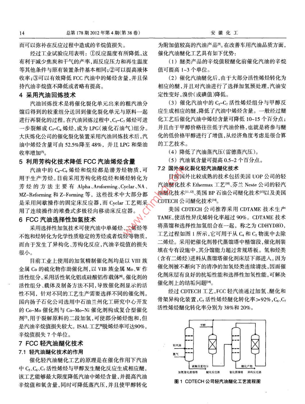 FCC汽油降烯烃技术浅述