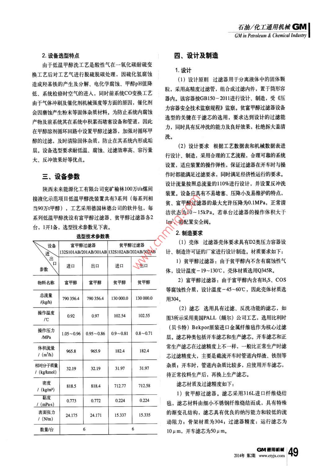 低温甲醇洗工艺贫富甲醇过滤器设计及制造要点