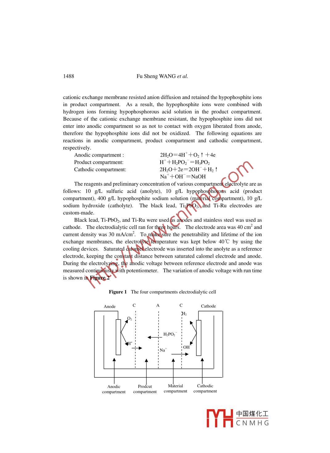 Selection of Anodic Material Used in Electrolytic Process for Producing Hypophosphorous Acid