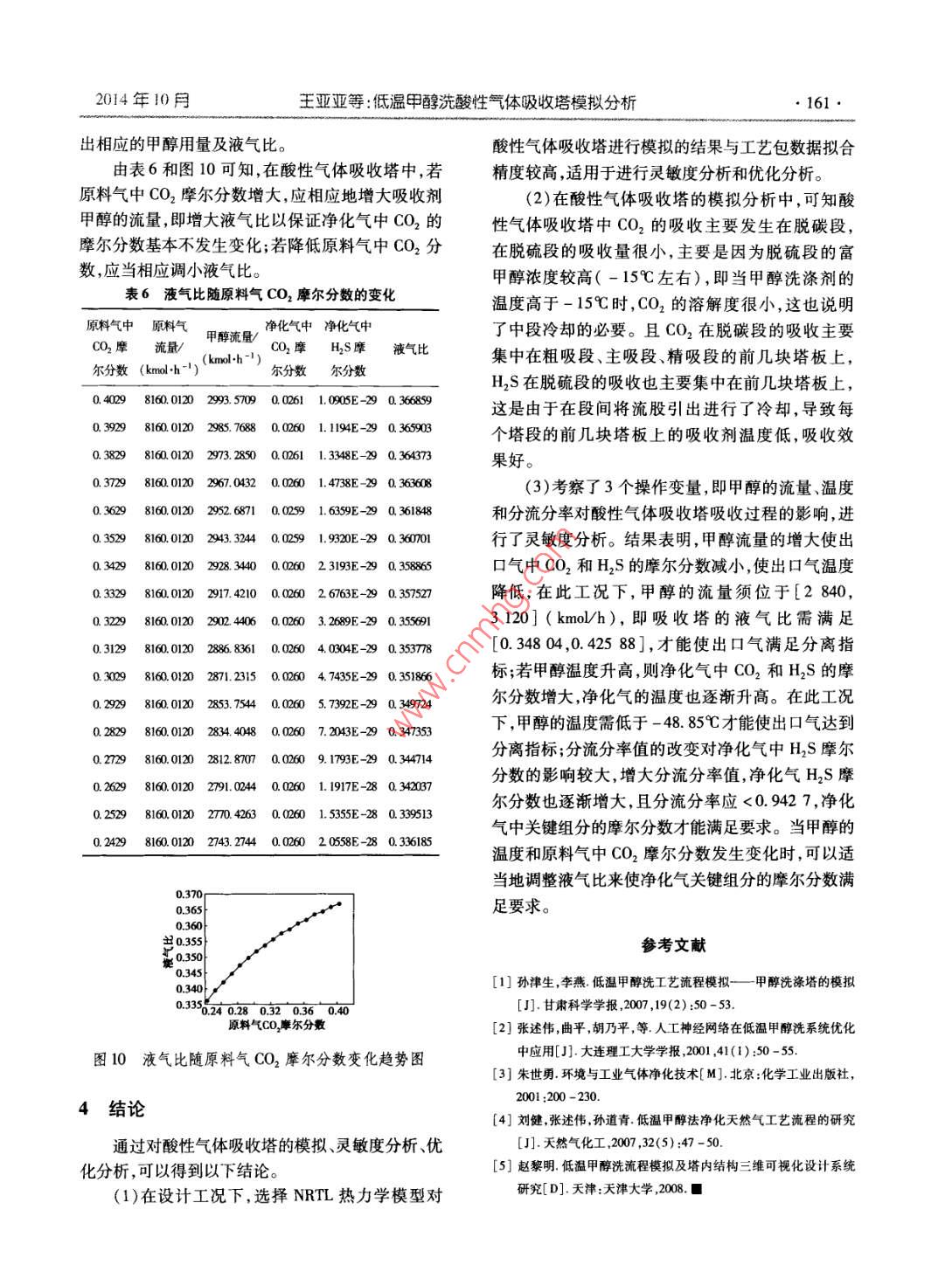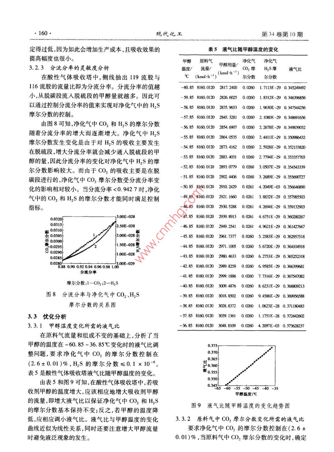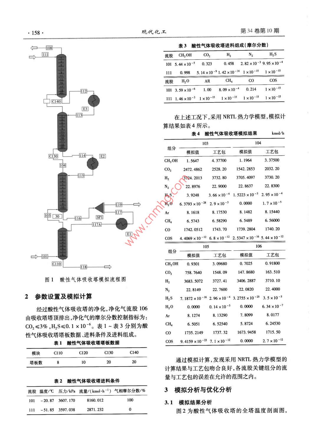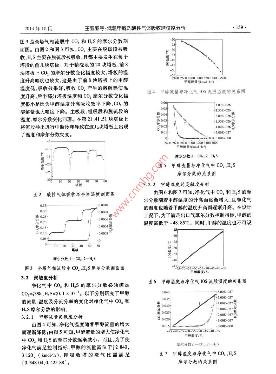低温甲醇洗酸性气体吸收塔模拟分析