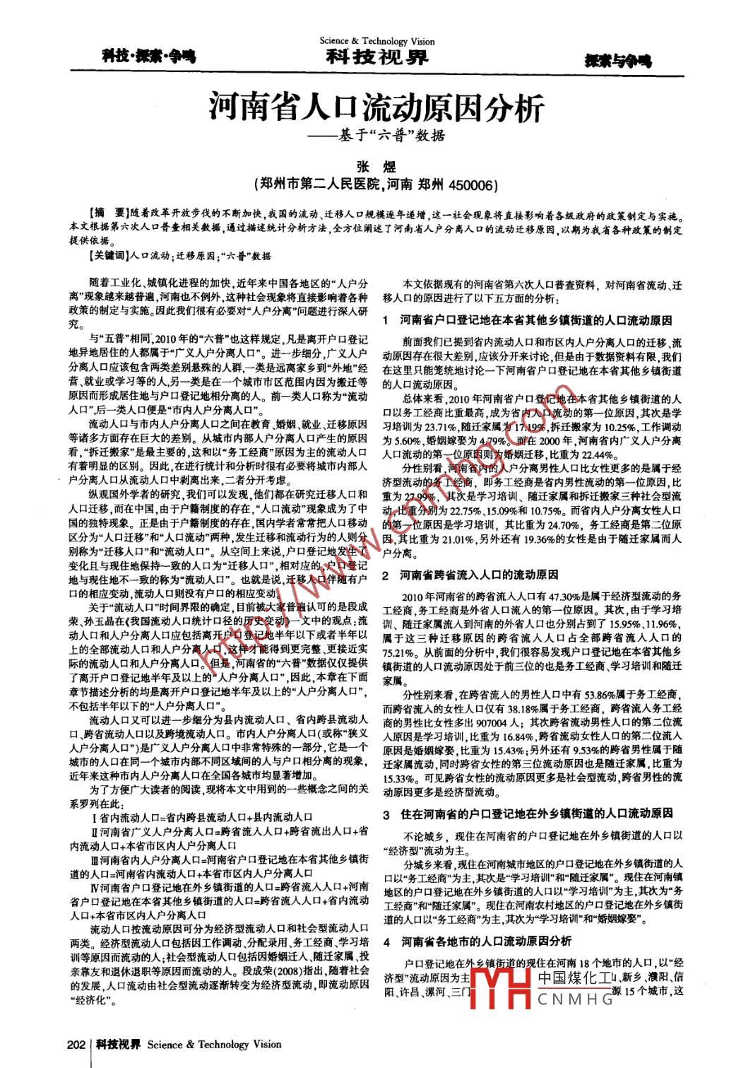 河南省人口流动原因分析——基于“六普”数据