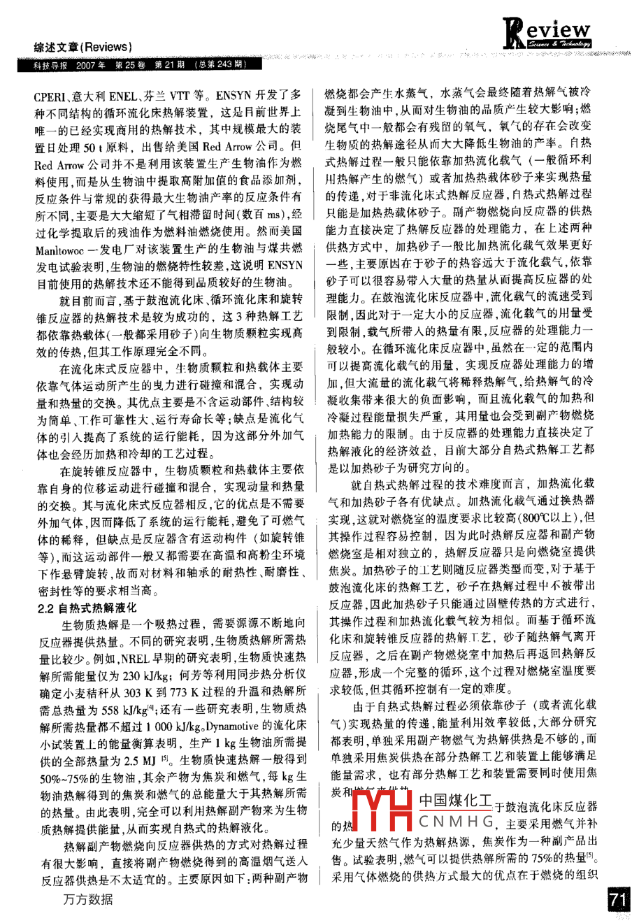 生物质快速热解制备生物油