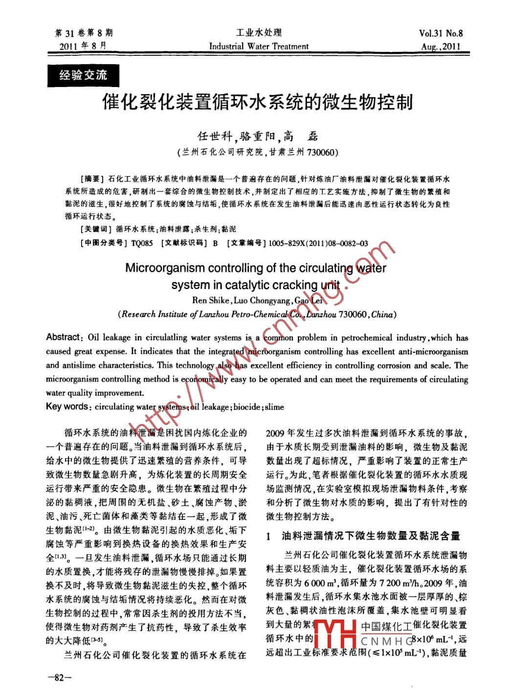 催化裂化装置循环水系统的微生物控制