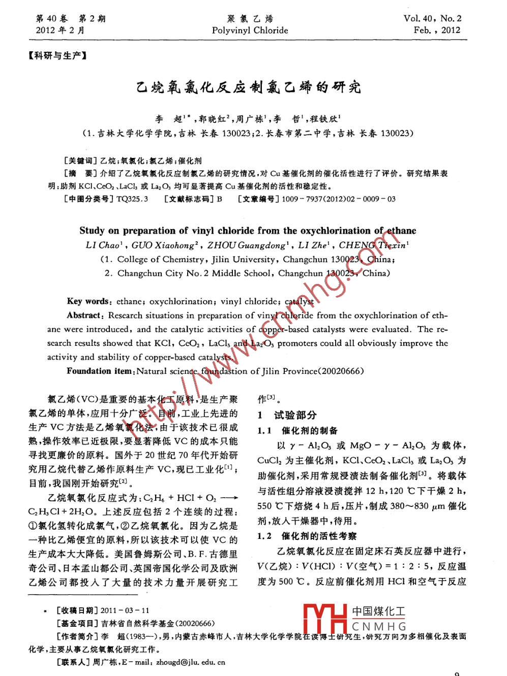 - 期刊名字:聚氯乙烯